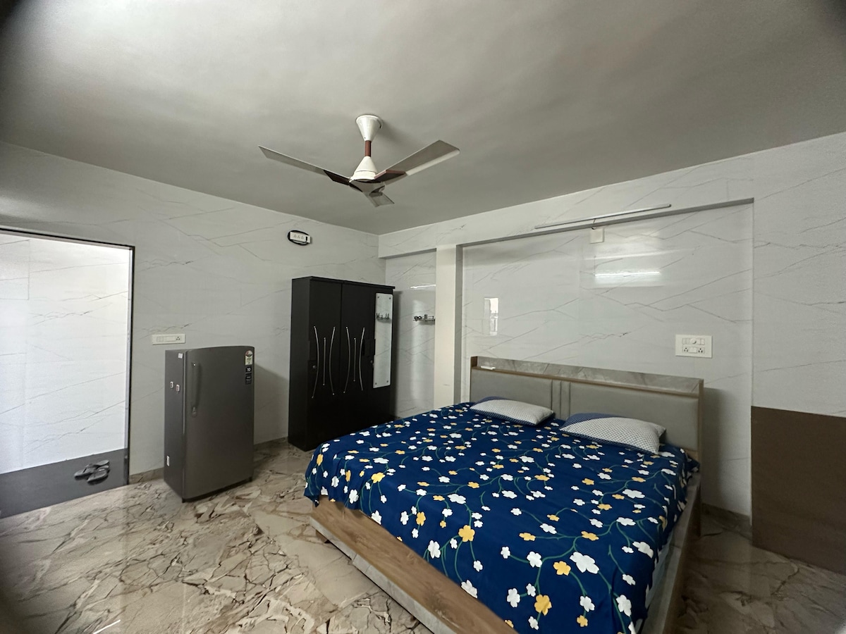 Welcome to your cozy studio apartment in Ahmedabad! Perfectly located with easy access to the airport (12 km), railway station (4.6 km), Narendra Modi Stadium (9 km), and the nearest metro station (1.5 km). Enjoy a comfortable stay with essential amenities, and your hosts live next door and are available anytime for assistance. Please Note: A valid ID is required to be submitted before check-in. Outside visitors are not allowed.