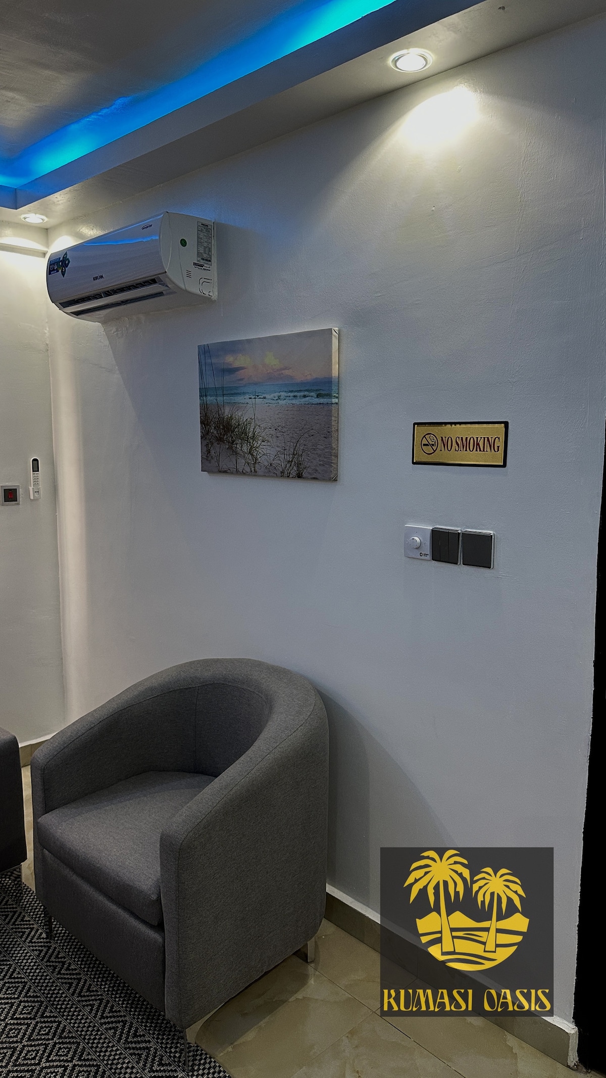 Welcome to Kumasi Oasis- Your Tranquil Escape in the heart of the Ashanti Region. Nestled within the quiet and secure Osei Tutu II Gated Community in Asokore Mampong, Kumasi. Kumasi Oasis offers the perfect blend of comfort, privacy, and convenience. Whether you're visiting for business, leisure or academic pursuits, this place provides an ideal base just minutes from KNUST, Manhyia Palace and the Prempeh I International Airport.