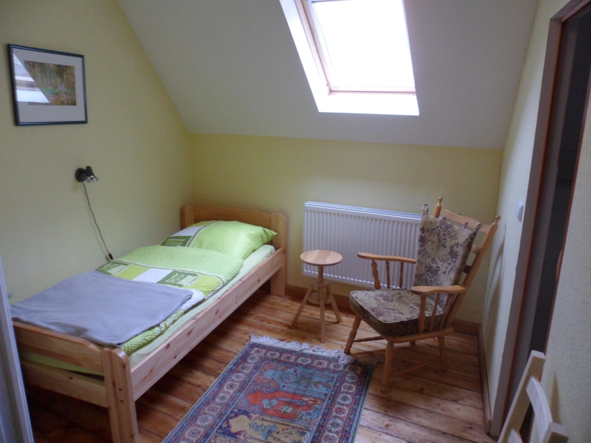 Dieses Nichtraucher-Zimmer ist auf der 2. Etage unseres Privat-Hauses und verfügt über ein eigenes Duschbad/WC. Das Bett hat eine Größe von 200 x 200 cm mit 2 Matratzen. Der Sessel ist als Futonbett ausziehbar auf 80x200 cm. Das Frühstück servieren wir in unserem Esszimmer.