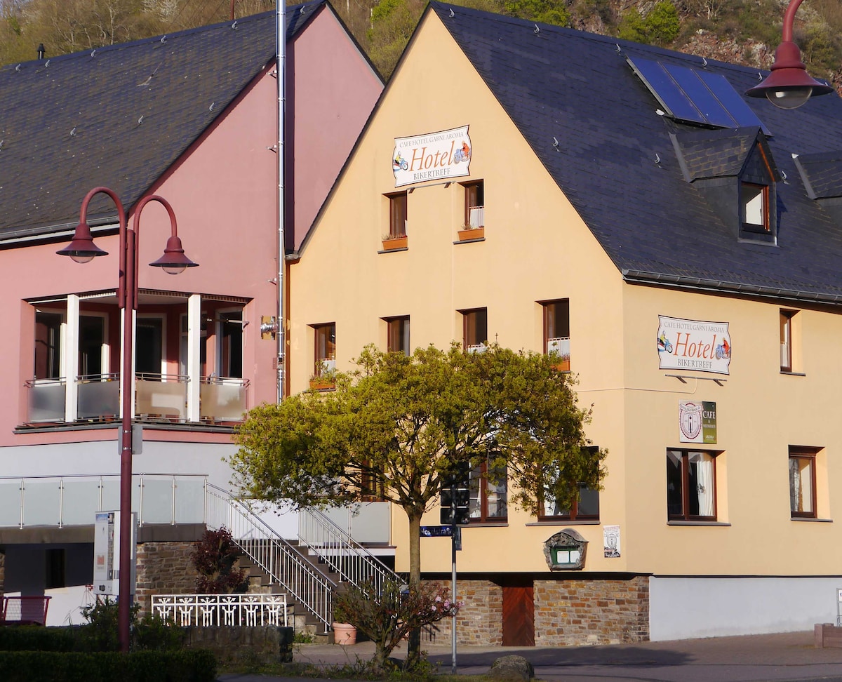 Schöne Landschaften erleben, den Tag mit Freunden verbringen, Spaß haben und am Abend fühlt man sich wie zu Hause. Die Zimmer komfortabel ausgestattet, geräumige Duschen und ein Frühstück, das keine Wünsche offen lässt. Motorrad fahren, wandern, radeln, mit dem Kanu die Mosel entdecken oder einfach die Seele baumeln lassen. Auf allen Wegen Natur, landschaftliche Vielfalt, Weitblick, Moselschleifen, Burgen & Schlösser, historische Städte und Städtchen, Gemütlichkeit & Gastlichkeit.