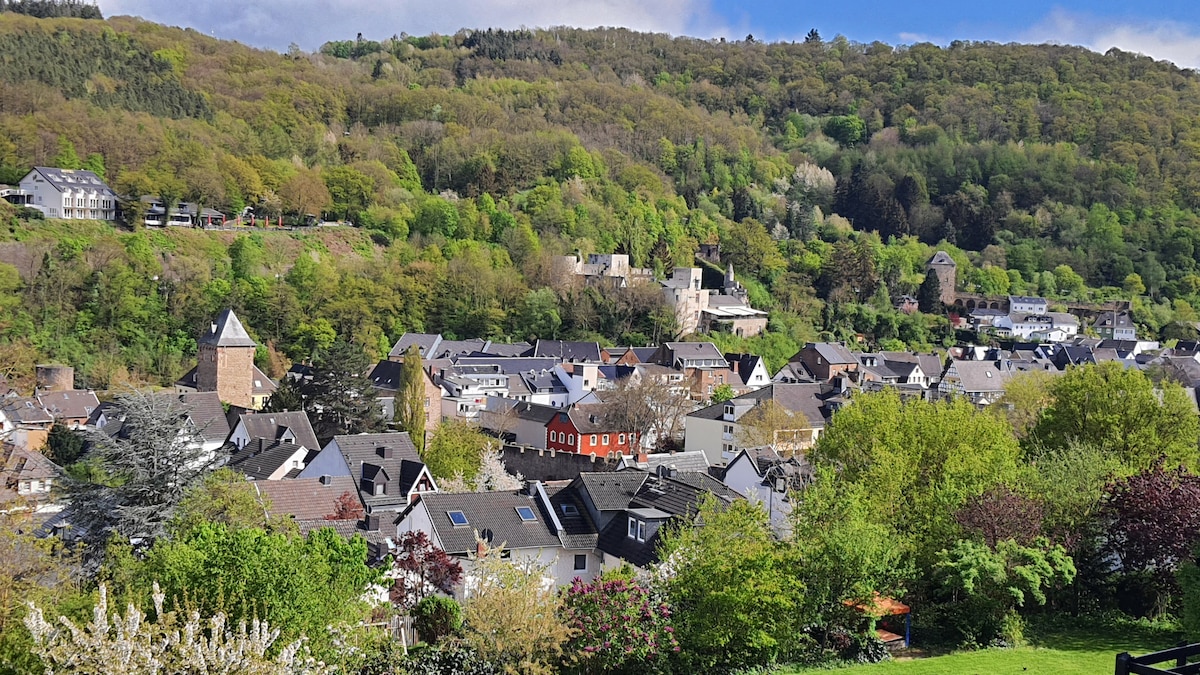 Spacious apartment with 2 bedrooms in a listed townhouse. Central yet quiet. 3 minutes from the train station - bus stop at the house. 5 minutes to the pedestrian zone. 30 minutes by car to the legendary Nürburgring. A family-friendly, uncomplicated atmosphere awaits you in a detached house. Ideal for couples, solo travelers, business travelers, & families. Free parking on the street.