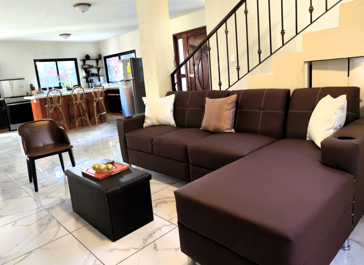 Relax with your family in this beautiful, quiet, and cozy retreat, offering a pleasant climate, lush gardens, and stunning views of the Apaneca mountain range. The house is fully equipped and features a master bedroom with a queen-size bed, plus two additional bedrooms, each with two twin beds—providing ample space to comfortably accommodate up to six guests. The home is furnished with a kitchen, refrigerator, coffee machine, and many other amenities, including TV and Starlink Internet.