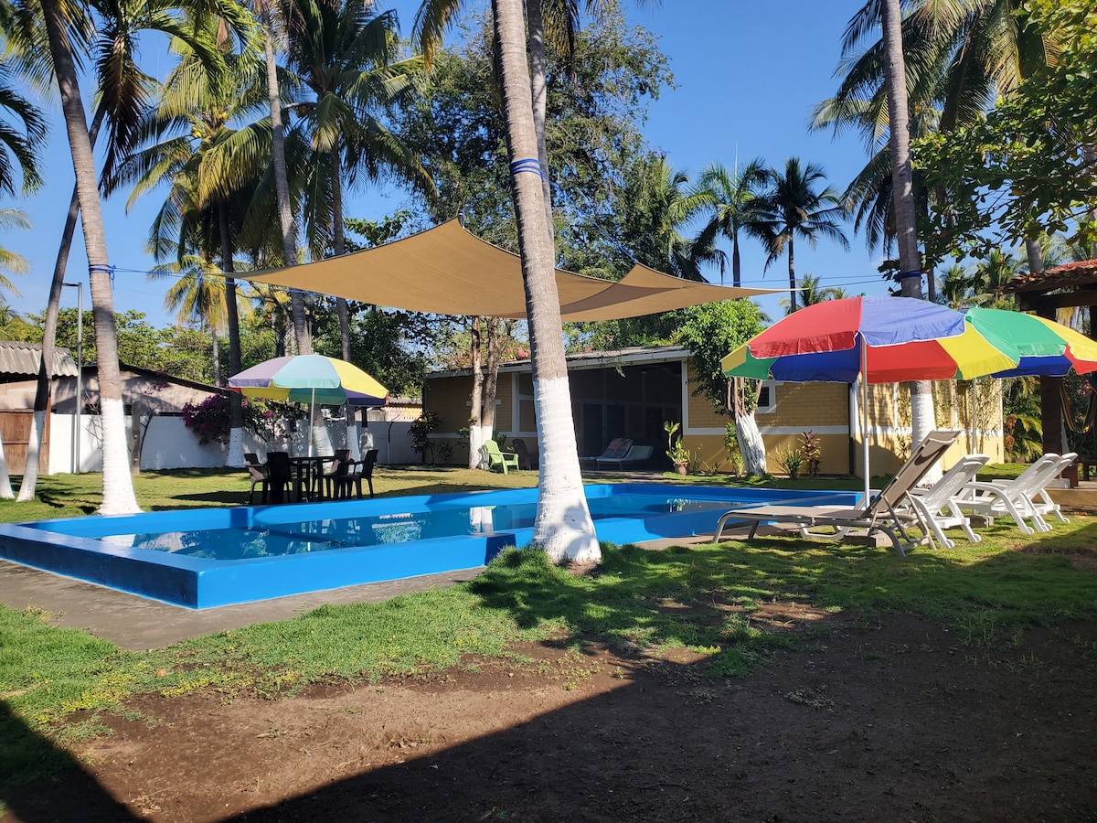 Visita este hermoso rancho de playa ubicado en costa azul un lugar equipado con amplia zona verde, sala familiar, salas de star, comedor cocina, 4 habitaciones con aire acondicionado, amplias zonas de descanso y con una refrescante piscina, ven a relajarte tus fines de semana o días de semana y podrás ir a disfrutar de unos hermosos atardeceres en nuestra playa costa azul