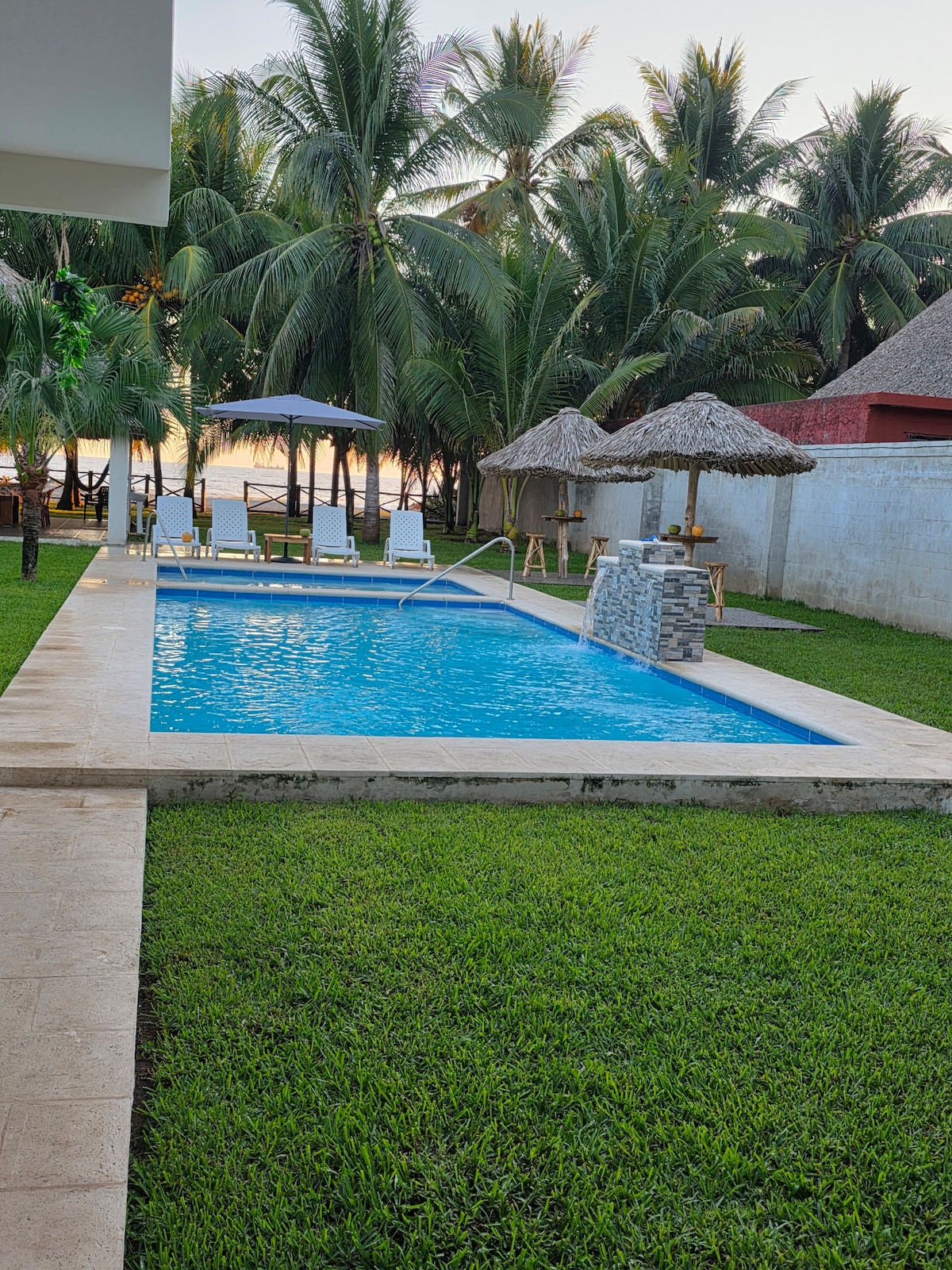 The most beautiful beach in El Salvador. A great place to relax, forget about the city noise and admire the sunsets in the terrace just in front of the ocean. Enjoy a nice barbecue by the pool, play basketball or take a walk on the beach to the bocana just 15 minutes away. PLEASE READ THE HOUSE RULES.