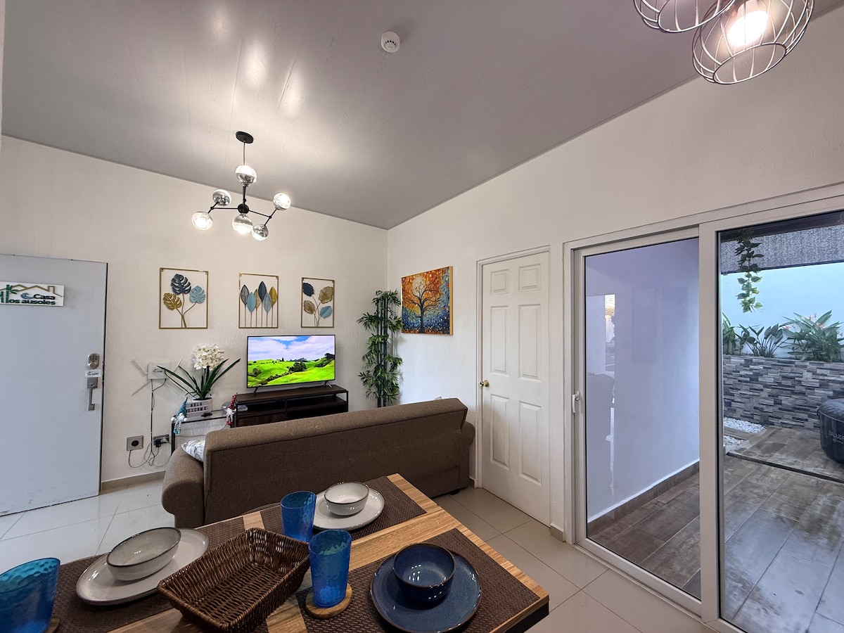 Villa de Vientos, en el corazón de Apaneca, cautiva a primera vista con su primaveral jardín interior en el que convergen tres apartamentos. Independientes, equipados al detalle y con baño propio, todos ofrecen confort, privacidad y lo necesario para sintonizar con la naturaleza, la tranquilidad del pueblo y tener una estadía memorable. El Apartamento 1, con un dormitorio y un espacio multifuncional con cocina y comedor, acomoda a 4 personas, facilita un sofá cama en sala.