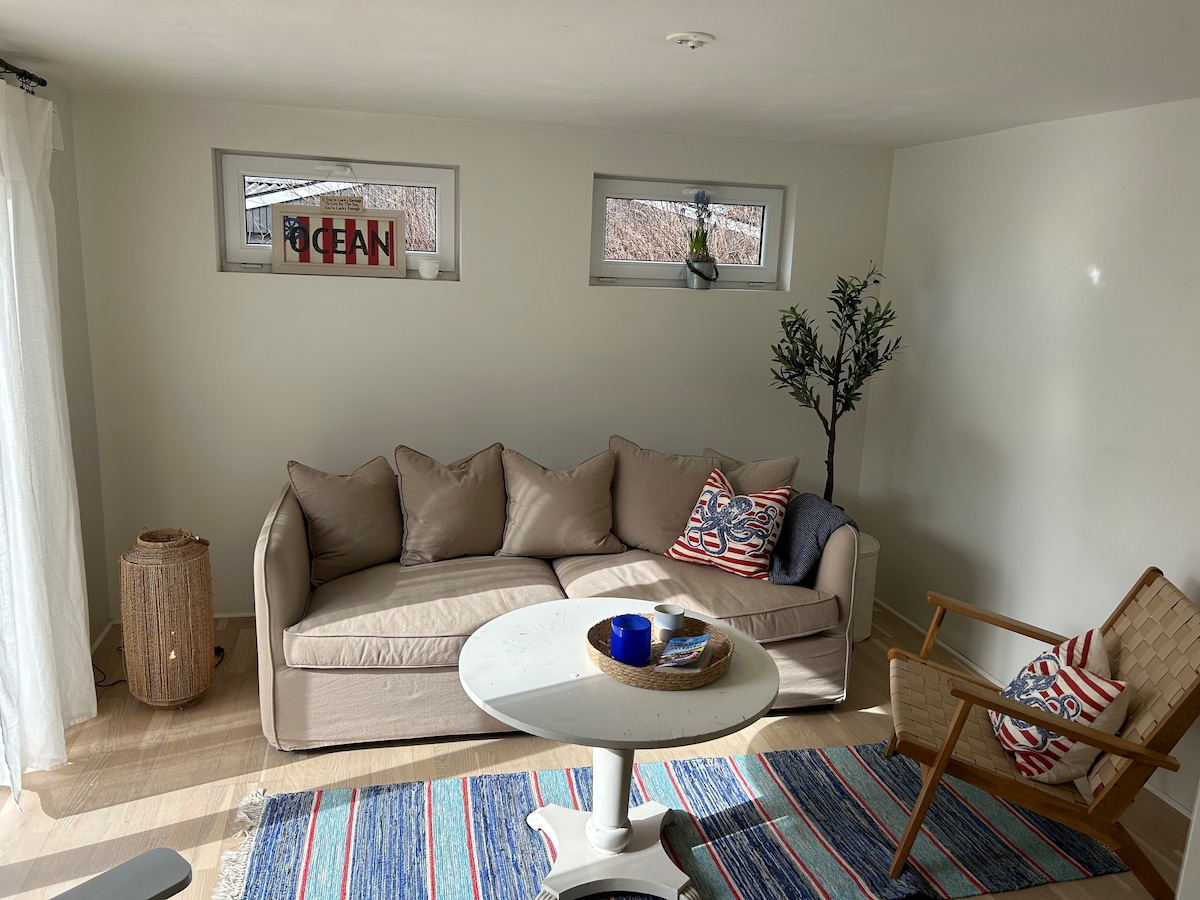 Ett boende passar dig som vill njuta av en lugn och rogivande omgivning. Stugan är en ljus och trevlig gäststuga som ligger nära vårt boningshus. Den har ett fantastiskt läge vid vattnet, är på ca 35 kvm och har utrustat kök, badrum med dusch, ett sovrum med våningssäng och ett vardagsrum med bäddsoffa. Stugan har en liten uteplats och egen parkering. Nära till fantastisk natur och hav. Kanot finns att låna för den som önskar.