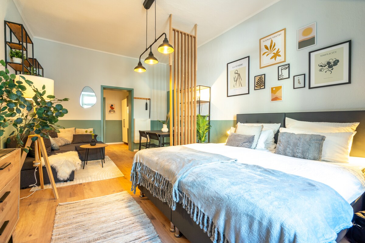 Herzlich willkommen in dieser luxuriösen 100qm2 Loftwohnung im 7. und 8. Stock! Die stilvoll eingerichtete Unterkunft bietet eine Infrarotsauna im Wintergarten, ein Loftnetz über der Treppe und eine Dachterrasse. Von jedem Zimmer genießen Sie eine atemberaubende Aussicht auf den Sonnenaufgang und den Siebentischwald. Mit Smarthome steuern Sie die Beleuchtung bequem übers Tablet. Öffentliche Verkehrsmittel und ein privater Parkplatz direkt vor dem Haus runden das Angebot ab. Wir freuen uns😀