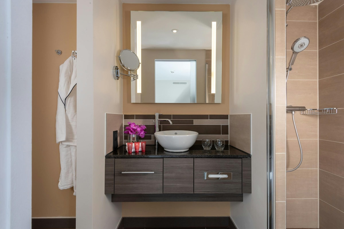 HBF 附近的现代化酒店客房 • 浴室 • 加大双人床/两张单人床