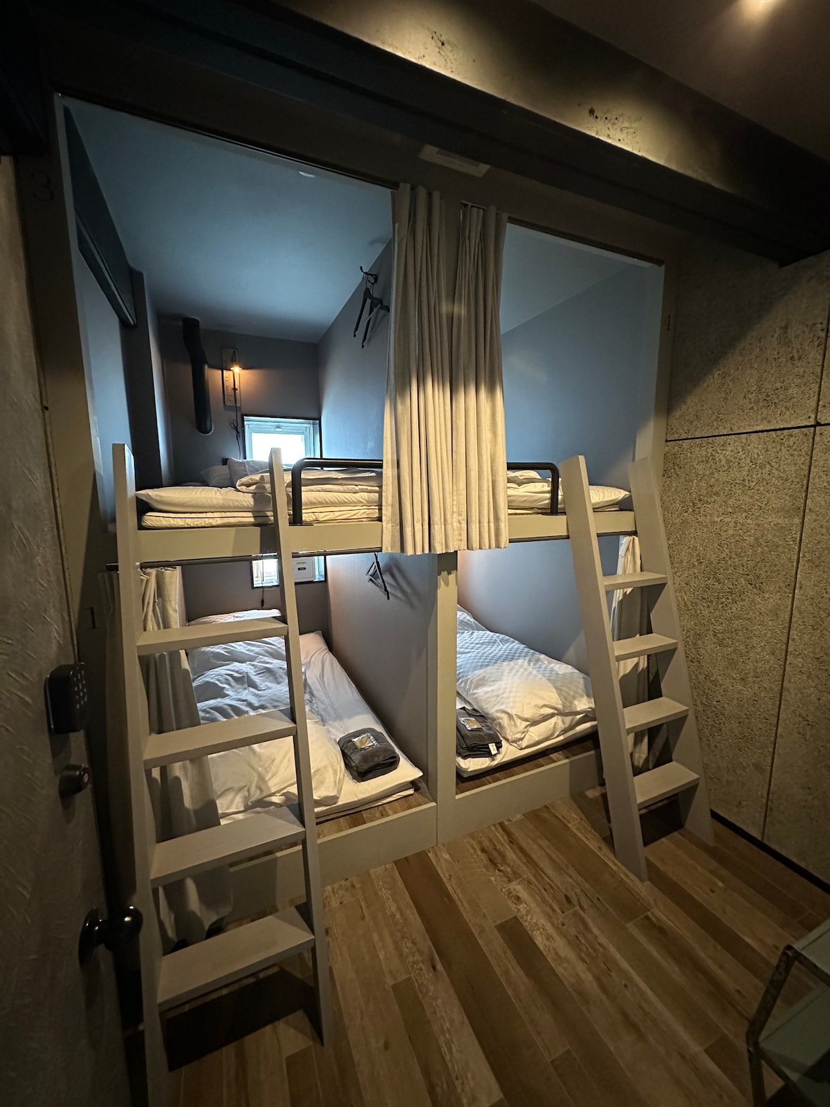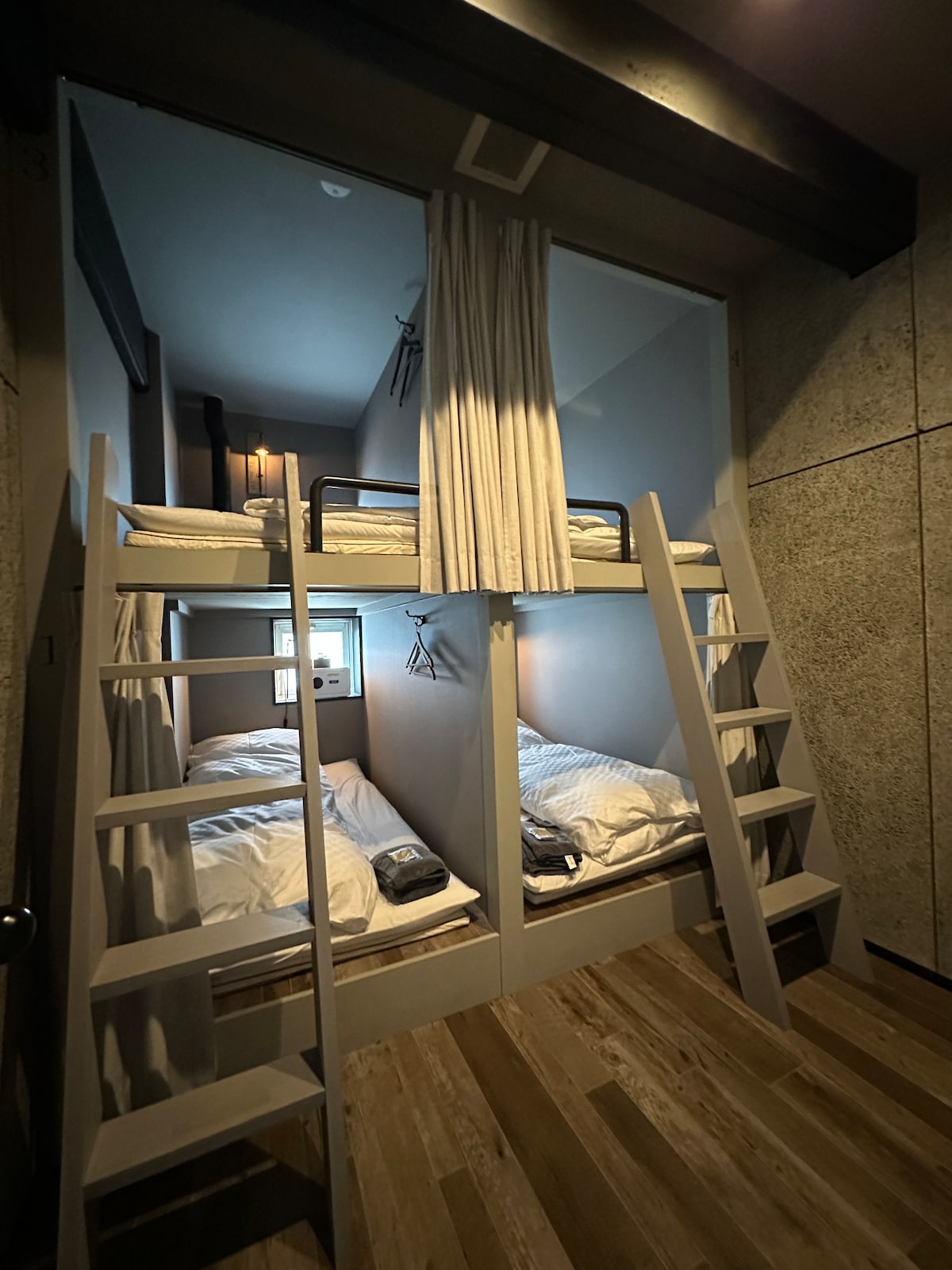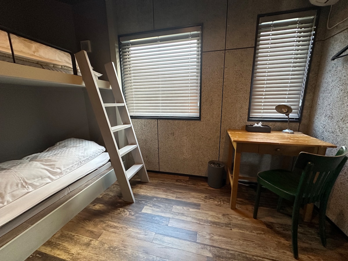 "ゲストハウスよるよなか"の3〜4人用の個室です。 部屋内に収納してあるマットレスを敷いて、ご利用いただく形になります。 大須商店街までは徒歩7分圏内で、1階には地元の常連さんで賑わうバーを併設しています。 ゲストハウスフロアの共有のキッチンには各種調理器具、調味料を揃えており、すぐお料理が楽しめます。近くのスーパー、コンビニ、薬局までは350m内でアクセス可能です。 共有の広々としたリビングは仲間や他の宿泊者同士でお酒を飲んだり、24時間楽しんでいただけます。 作業用カウンターもあるので、PC作業なども可能です。 以下のものは付属していないため、 レンタルまたは購入となります。 レンタルフェイスタオル 50円 レンタルバスタオル 100円 歯ブラシ 50円 洗濯機 200円 乾燥機 300円 チェックイン時刻は16〜23時の間での対応となります。 ご予約後、チェックイン希望時刻のご連絡をお願いいたします。 他にも、女性用ドミトリー(3人で貸切も可能)、ミックスドミトリー、ダブルベッドの個室、ツインベッドの個室がございます。 こちらも、詳しくはお問い合わせください。