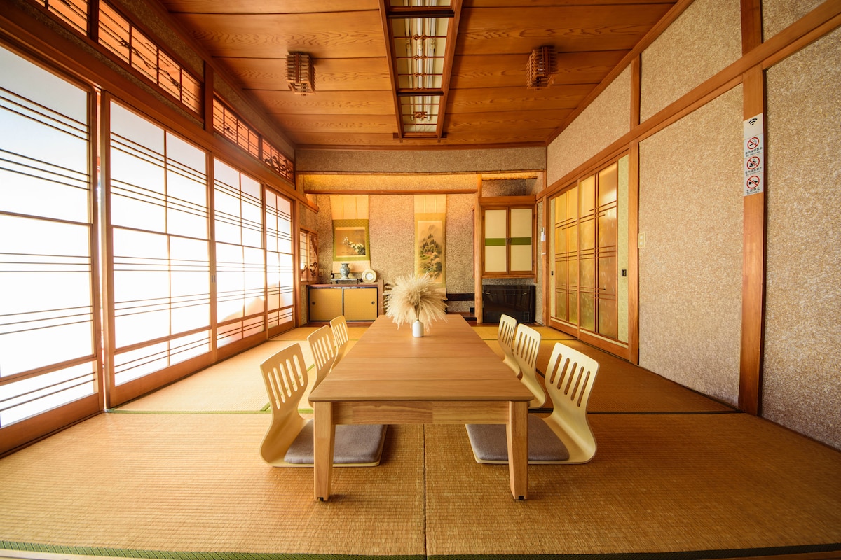 一组限定的特别住宿体验。 在拥有63年历史的日式老宅中,感受被宁静包围的悠然时光。 8榻榻米的佛间与和室可自由使用,拉上隔门可作为独立房间,也可作为宽敞的大客厅。 采用高档羽绒被,带来舒适惬意的睡眠体验。 配备厨房与洗衣烘干机,非常适合长住。 附设的车库中配有现代燃气烤炉,可尽情享受烧烤乐趣,也可使用投影仪观看电影或网络视频。 即使在雨天,也能在全天候空间中与家人、朋友度过悠闲时光。 岐阜羽岛位于日本的正中央,靠近新干线“岐阜羽岛站”和名神高速入口,前往京都、大阪、高山、白川乡等地交通十分便利。 周围被宁静的田园景色环绕,夜晚虫鸣阵阵,仿佛能让心灵慢慢放松。 步行或驾车几分钟内即可到达便利店与餐厅,在这里可同时享受乡间的治愈与都市的便利。 这是一座让人心安的和风空间,可自由度过属于自己的时光。 无论作为旅行的据点,还是远离日常、重拾内心平静的场所,这栋整租的古民家都是最佳选择。