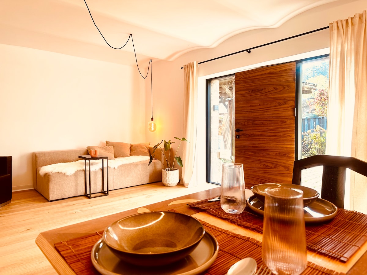 Karibu Nyumbani! Wir begrüßen dich ganz herzlich in unserer wunderschönen Maisonette-Wohnung in bester Lage, die dir für deinen Aufenthalt alle Annehmlichkeiten bietet. Die offene Gestaltung mit den sichtbaren Tragbalken versprüht einen supergemütlichen Charme, die stilvolle Einrichtung lädt zum Wohlfühlen ein. Neben der voll ausgestatteten Küche inkl. Geschirrspüler gibt es einen Arbeitsplatz, Smart-TV, WaMa, eine freistehende Badewanne sowie einen überdachten Balkon.