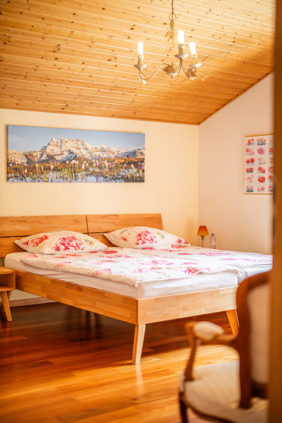LA DAILLE, chambre d'hôtes aux Diablerets (3 ch. doubles - 6 personnes -7 maximum lit supplémentaire). Enfant jusqu'à 6 ans logé gatuit dans la même chambre que les parents . Ancienne ferme familiale et authentique au centre du village des Diablerets. Le chalet est idéalement situé près de la Grande Eau et offre une belle vue sur le massif des Diablerets! Le domaine skiable et la piste de luge (longue de 7km 600) sont à 7 minutes à pied. Piste de fond, patinoire naturelle et promenades à 3 pas.