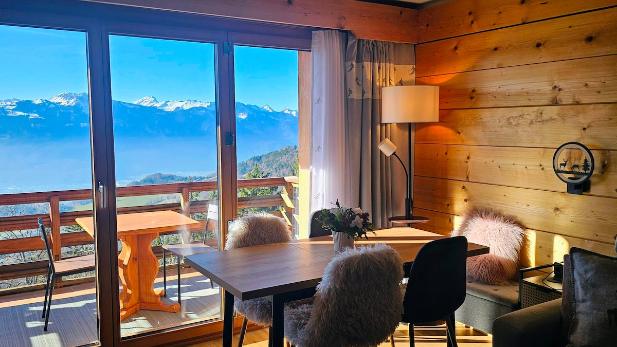 Profitez de vous détendre dans cet appartement au rez-de-chaussée d'un chalet d'habitation. Fraîchement rénové avec des matériaux naturels et de qualité, il offre tout le confort nécessaire. Perché à 700m d'altitude, le logement bénéficie d'une vue imprenable sur la plaine du Rhône et les Alpes Vaudoises. Les linges de bain et la literie sont inclus dans le logement. Possibilité de dormir également avec un enfant en bas âge en plus de deux adultes (lit bébé à disposition sur demande).