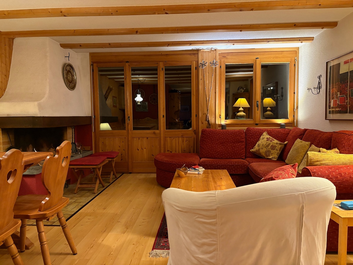 Sit back and relax - in this quiet, stylish accommodation (130sqm).enjoy the nearby ski slope (200m). Wonderful large panoramic balcony (south-southwest), 2 bedrooms (French bed 160x200m and 2 beds each 90x200m), large living-dining room with open fireplace, library (with 1 bed 90x200cm) and fully equipped kitchen are available. In the bathroom there is a bathtub, shower, double washbasin and a WC. Extra guest toilet. WiFi Language: German, English, French.