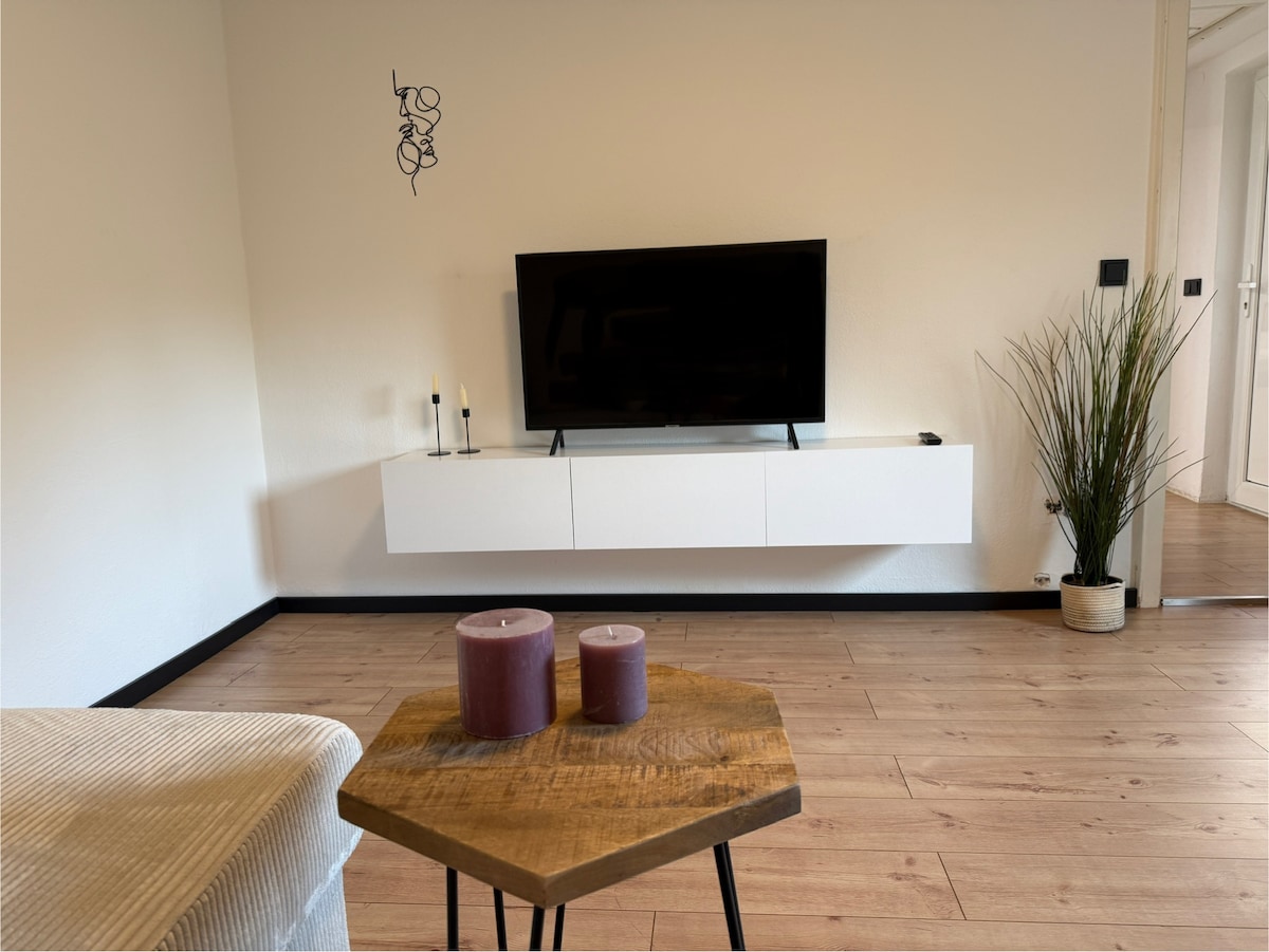Apartment on 2nd floor. New bathroom with shower and toilet. Private entrance, quiet location with large balcony 2 bedrooms, each with two beds, cozy kitchen-living room with dining area, and good parking options Wi-Fi, satellite TV and central heating available McDonald’s and supermarkets are just 500 meters away and easily reachable on foot Motorcyclists and cyclists are very welcome. We offer a covered parking space for your vehicles. Please note our check-in and check-out times!