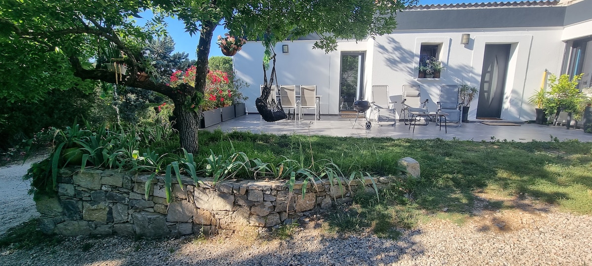 Idéalement située, entre Nîmes et Montpellier, vous serez à 20 min des Arènes de Nîmes, à 30 min de Montpellier et à 35 min des plages. Au grès de vos envies, vous visiterez dans les environs (45 min), le Pont du Gard, Avignon, le Duché d'Uzès, la Camargue, les Saintes Maries de la Mer.... Vous aurez tout le confort nécessaire pour des vacances farniente! Tournée vers l'extérieur, notre villa vous accueillera sur une belle terrasse ombragée de 40m2, avec vue sur le jardin arboré et sa piscine.