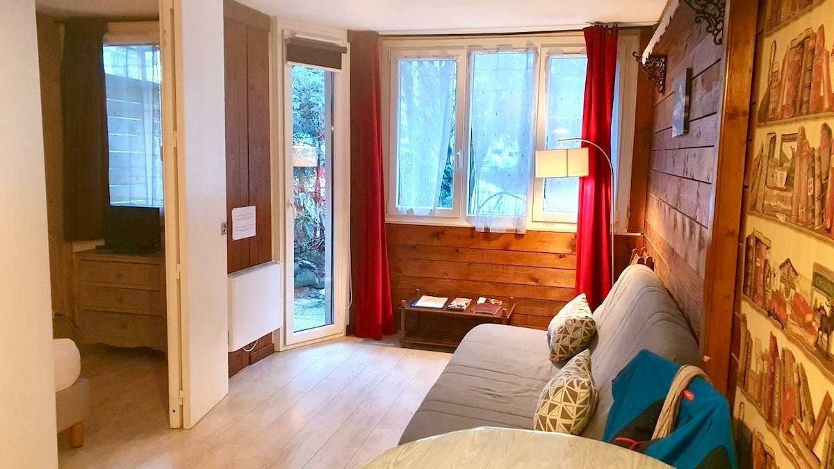 Petit studio plain-pied de 25 m2 dans une ancienne ferme typique de la vallée. Vue sur la chaine du Mont-Blanc. Dans un quartier tranquille à deux pas de Chamonix. Une place de parking( non couverte) est à votre disposition. L'entrée du studio se fait par une cour privée. Situé à 3 mn à pied de la gare routière (pas besoin d 'utiliser votre voiture) navettes sur toute la vallée. À 5 mn du départ du téléphérique de l'Aiguille du Midi et 10 min du centre ville et de ses commerces.