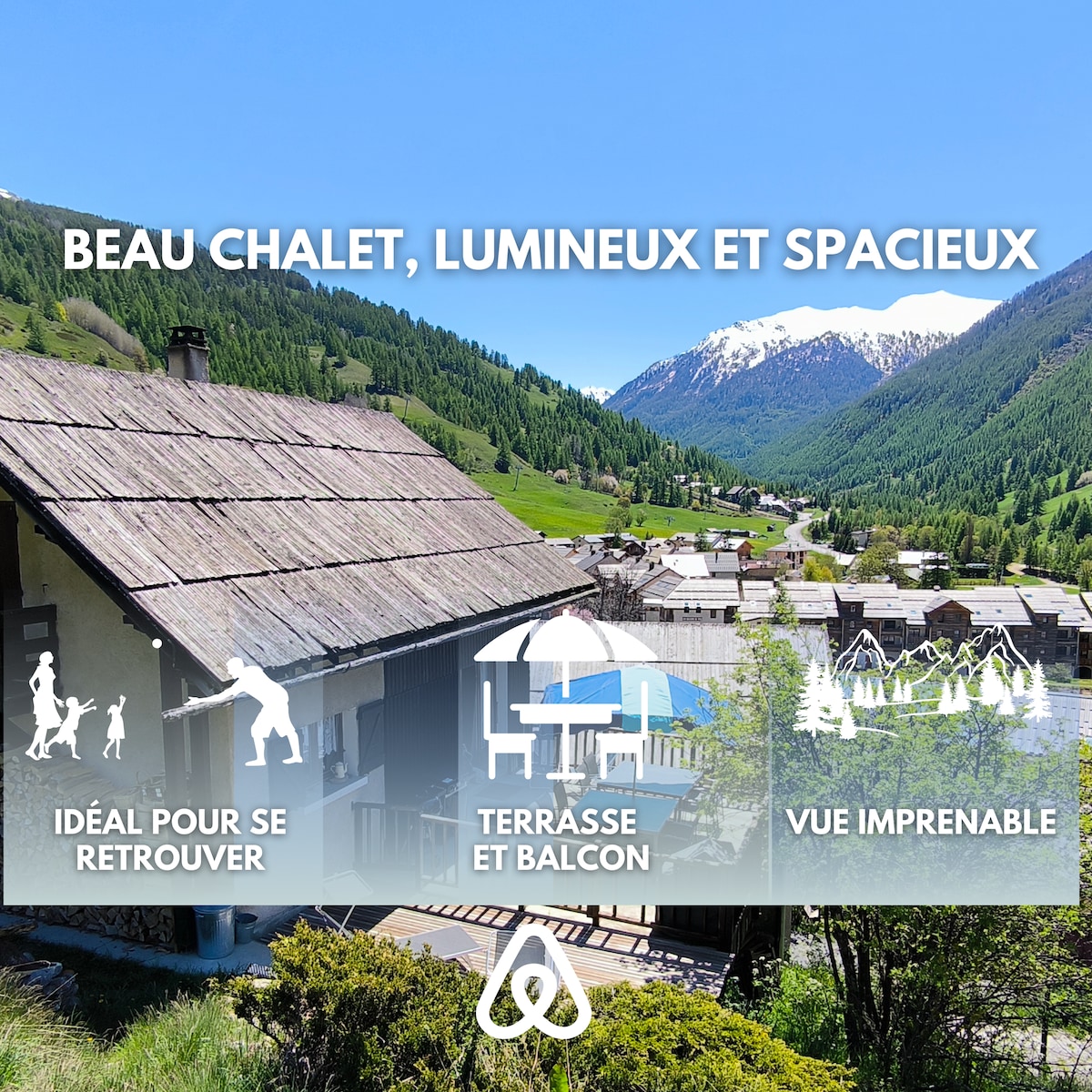 Bienvenue dans ce chalet chaleureux niché au cœur du Parc Naturel Régional du Queyras à Abriès ! Idéal pour des vacances en famille ou entre amis, il offre un cadre exceptionnel pour profiter de la montagne été comme hiver. Vous apprécierez la vue imprenable, la grande terrasse, la cheminée, les grands espaces et les équipements du chalet. Venez profitez du Queyras à travers les randonnées, le VTT, l'escalade, l'eaux vive, la découverte du patrimoine et des espaces préservés du parc.
