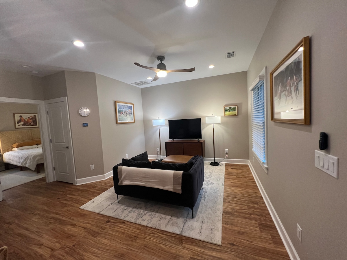 Welcome home to this peaceful cottage just walking distance to downtown Aiken, Aiken Polo Club grounds, and Bruce’s Field. One bedroom, personal washer/dryer and kitchen. Cozy living room with 55” smart TV. Bring your Firestick or use the log-in to access your favorite streaming platform. This cottage is private with no shared doors or entrances. If you’re looking to book 3+ months during Masters, send me a note and I’ll adjust monthly rate. Monthly maintenance conducted during 30+ day stays.