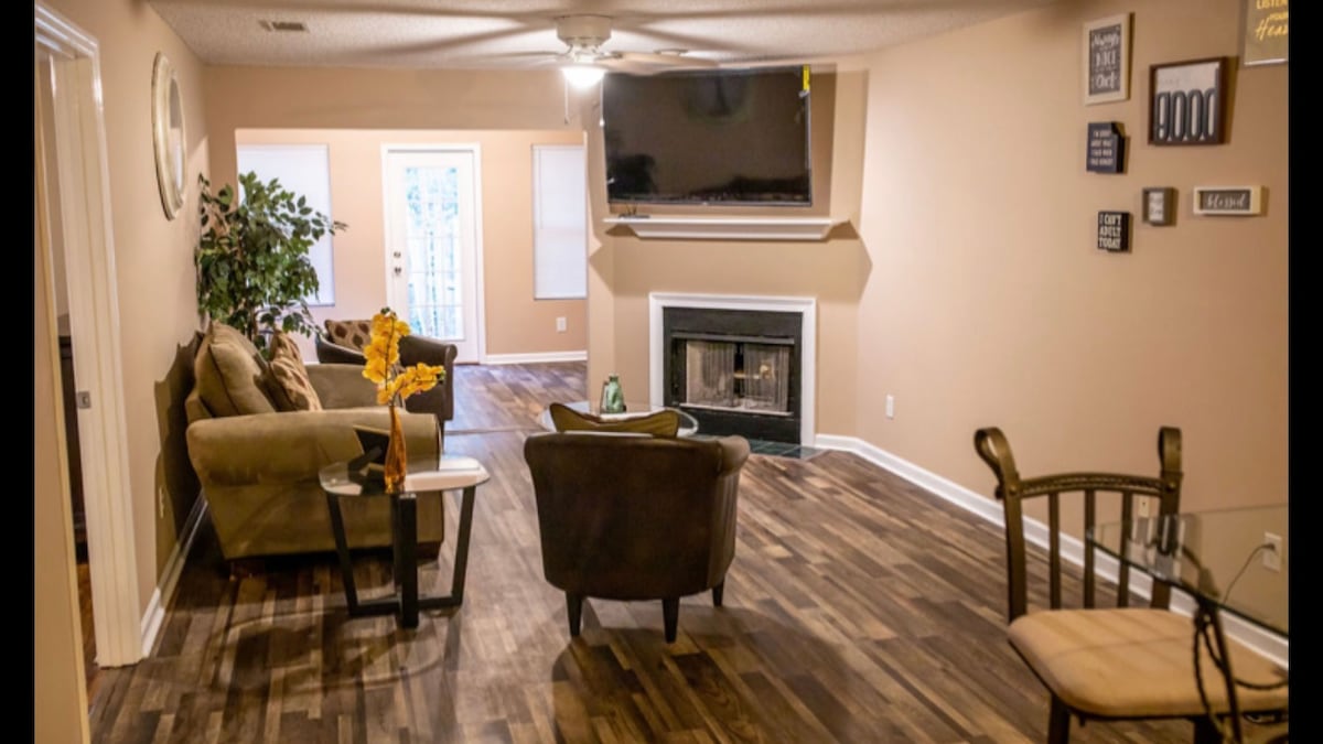 Stay at Aiken Escape, a stylish 2BR/2BA updated townhome near downtown Aiken and just 30 minutes from Augusta (home of the Masters). Perfect for families, couples, business travelers, or solo guests, it features indoor-outdoor living, a fenced yard with string lights, Smart TVs, Xbox, a stocked kitchen, remote-controlled lights/fans, and a dual-control king bed. Walk to dining, shops, and the new amphitheater, or drive 5 min to horse venues, 10 min to Hitchcock Woods, and 20 min to I-20.