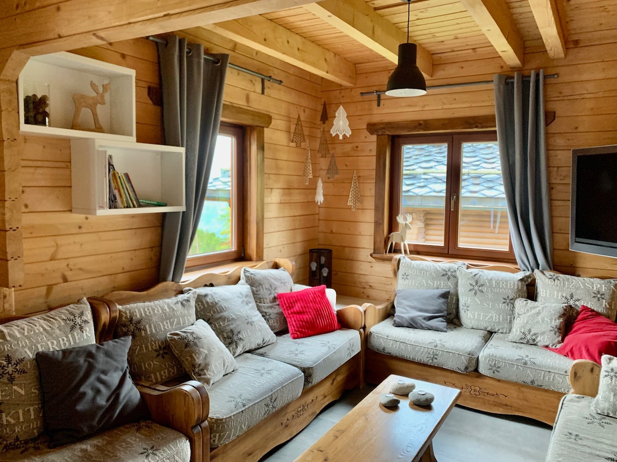 Le chalet est proche de la ville, situé à 1km de la gare, funiculaire. Appart de 125 m2 sur 2 niveaux, 4 chambres, une salle de bains, 2 WC. Il est parfait pour les couples et familles avec enfants. Tout équipé, décoré style chalet montagne, vieux bois, logement neuf. Une place de parking devant le chalet, local à vélos/skis Frais de ménage : mise à disposition et entretien du linge de lit et serviettes de toilette, ménage de fin de séjour. Quartier résidentiel, calme. Vue sur les montagnes .