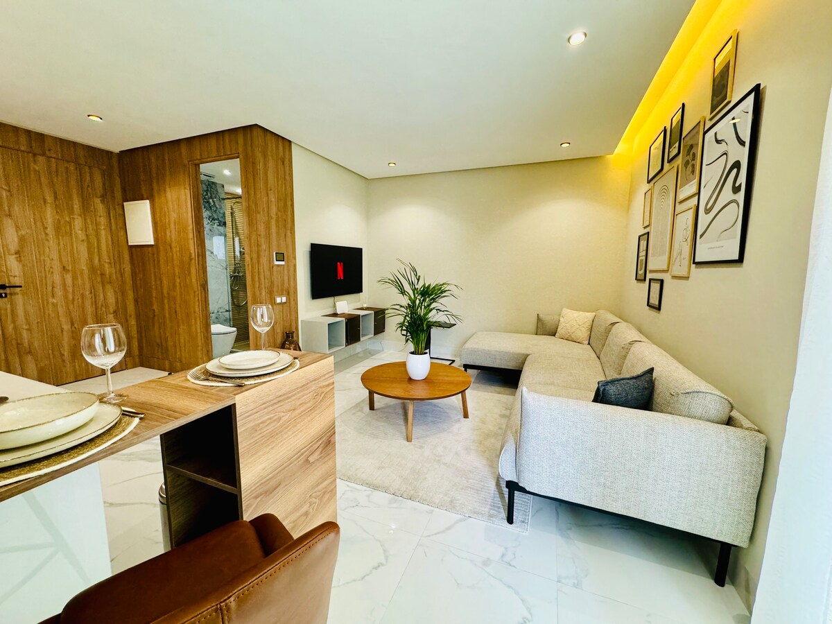 Our chic Casablanca apartment offers an unforgettable experience for travelers seeking comfort and elegance. Whether you’re here for business, city exploration, or simply relaxation, our accommodation will be your oasis of well-being. You’ll be situated in the heart of a chic Casablanca neighborhood, surrounded by high-end shops, gourmet restaurants, and trendy cafes. Major city attractions like the Hassan II Mosque, the Corniche, and the city center are easily accessible from the apartment.