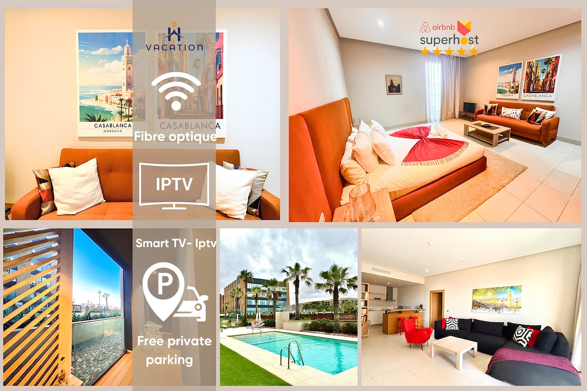 平均评分 5 分(满分 5 分),共 17 条评价Studio spacieux CFC - Anfa Park avec vue dégagée