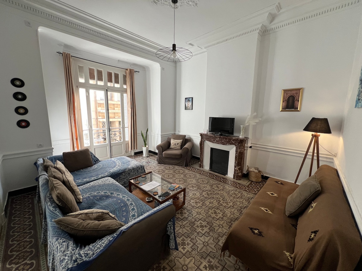 Passez un agréable séjour dans cet hébergement confortable.un T3 transformé en un joli T2 moderne avec toutes les commodités.En plein centre ville d ‘Oran. A 1 minute du front de mer ,tout est à proximité,garage, restaurants, commerces!!