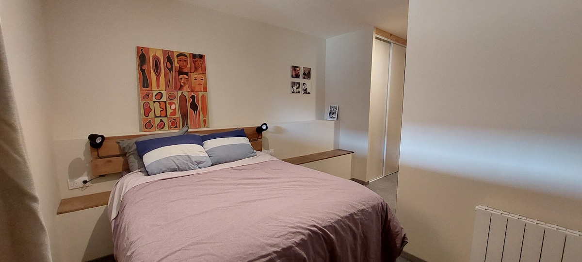 Nous vous accueillons dans notre maison fraichement rénovée, à Saint-Savin, située à 15 minutes de Bourgoin-Jallieu. Nous vous proposons à la location une chambre de 20 m2 avec une salle de douche et un toilette indépendant. L'entrée est privative. Nous avons installé une boîte à clés afin de rendre l’accès au logement plus simple, le code vous sera communiqué le jour même.