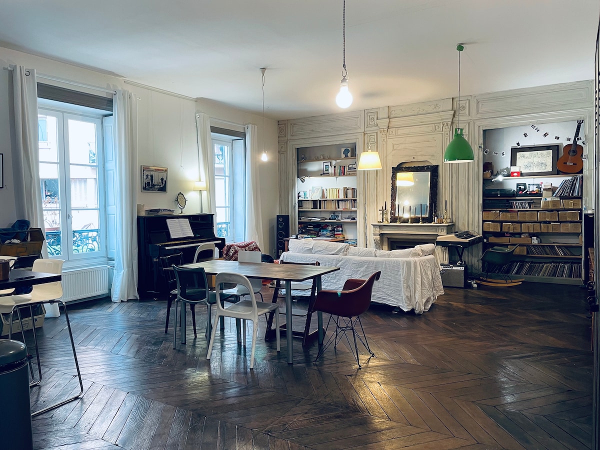 Spacious and bright loft canut (which in the 19th century housed silk weavers and their imposing looms, which are now part of Lyon's heritage with its 4-meter ceiling height.) With a surface area of ​​70m² plus a 20m² mezzanine in the heart of the village district of Lyon Croix Rousse, with exposed beams and stones, without vis-à-vis, in absolute calm with a breathtaking view of Lyon. 15 mins walk from the parc de la tête d'or and its lake.