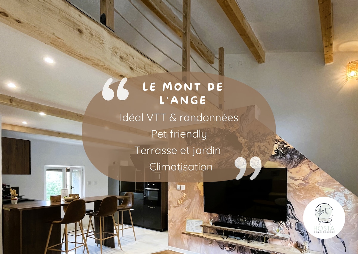 Détendez vous dans ce logement calme et élégant. La maison a été entièrement restaurée afin de vous accueillir dans un lieu plein de charme. Vous entrerez dans un charmant petit jardin clos entièrement.Vous aurez à votre disposition un bain nordique ouvert toute l’année avec poêle intégré,parfait pour vous prélasser dans une eau à 38 degrés entre amis ou en famille. Vous avez une double terrasse avec salon. Une chambre parentale avec son lit queen size et balcon .Une chambre pour les enfants