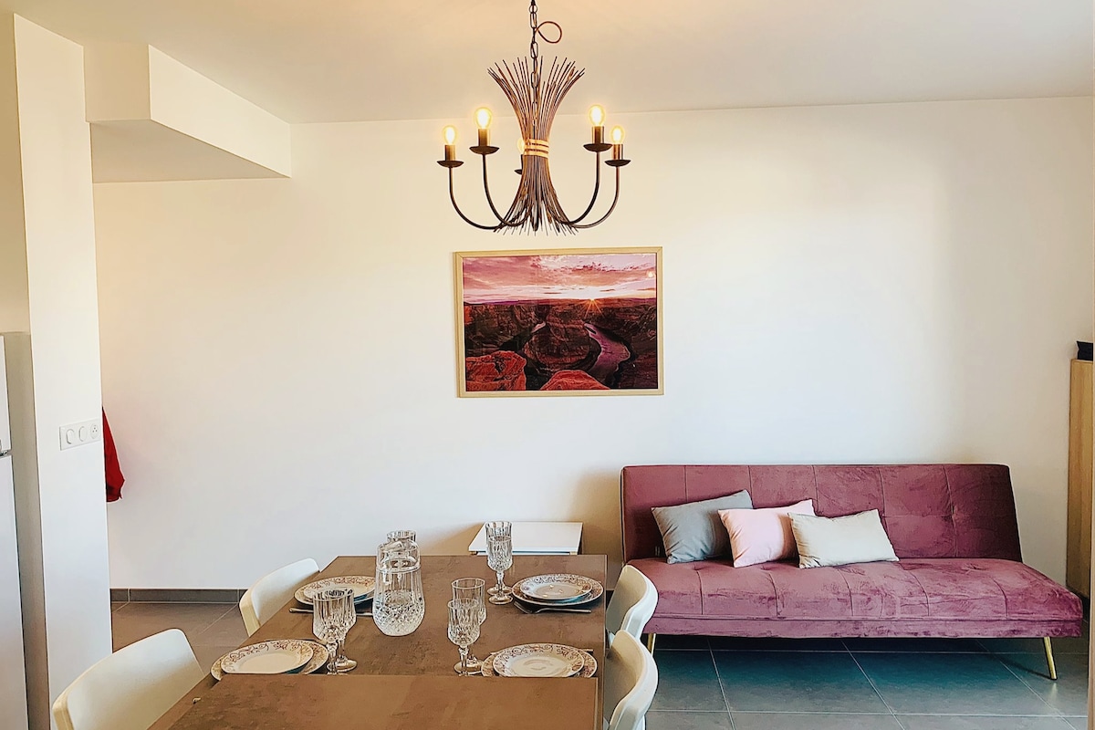 Détendez-vous dans ce logement neuf calme de 20m2 (+mezzanine) Un vrai cocon au cœur de Decines pour votre séjour touristique ou professionnel sur Lyon et ses alentours. Emplacement idéal pour le Groupama Stadium, Eurexpo ou encore l’aéroport Saint-Exupery mais aussi la gare Part-Dieu ou le centre ville de Lyon qui peuvent être rejoints en 17min en transports en commun. Ce bien lumineux comprend son entrée privative, 1 lit en mezzanine, 1 canapé convertible, 1 Sdb et une cuisine équipée.