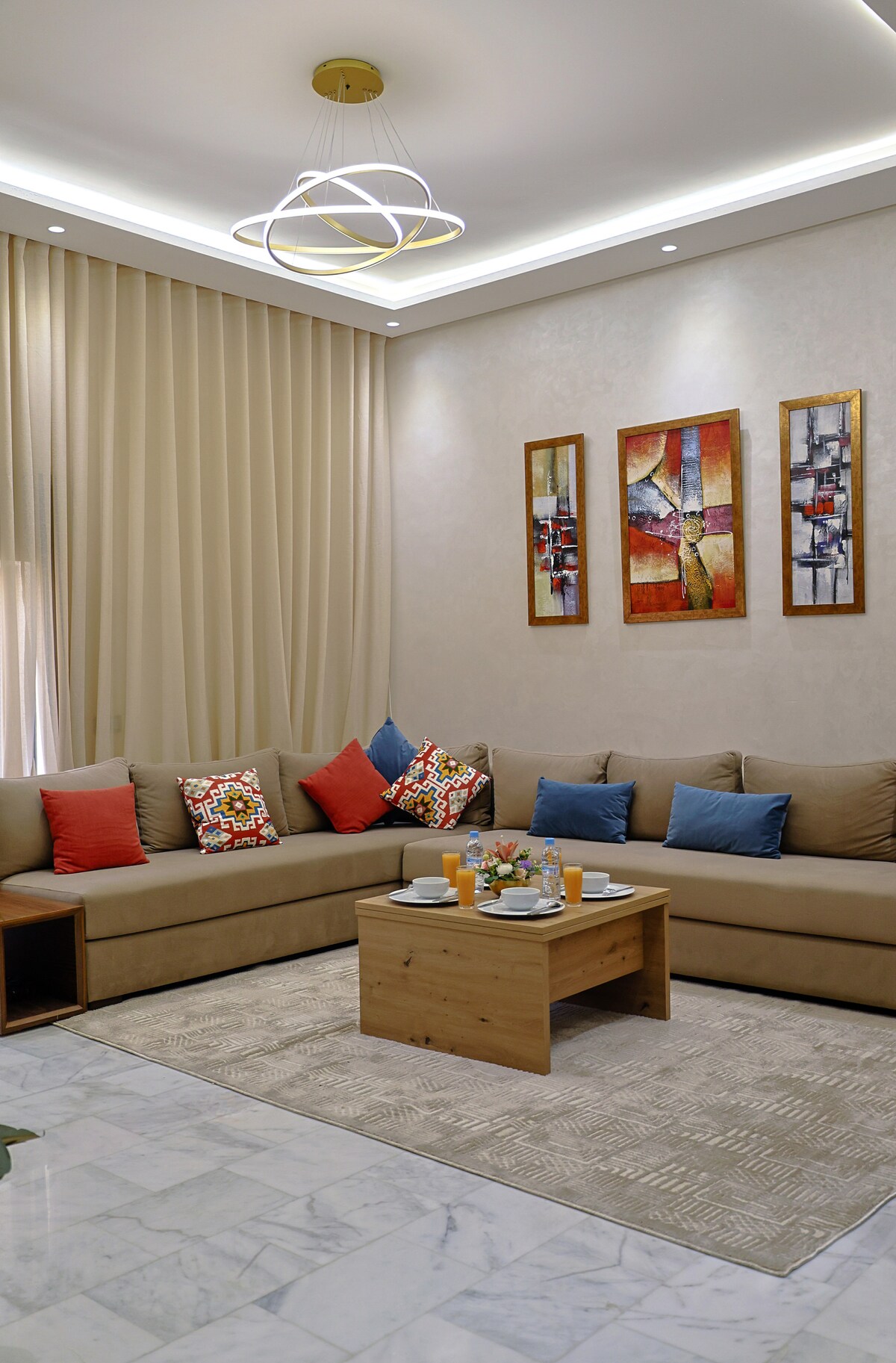 Profitez d'un nouveau logement décoré et vivant de la ville de Mohammedia. Entièrement équipé et d'une superbe vue sur la mer depuis la terrasse en orientation SUD. L'appartement est dans une résidence sécurisée (24/24 H) au cœur du parc de Mohammedia. - 5 mn à pied de la plage - 2 KM de la gare - 25 km de la mosquée Hassan II Cet établissement met à votre disposition un ascenseur, un service de sécurité et nous présentons une facilité de check-in et check-out grâce à notre serrure connectée.
