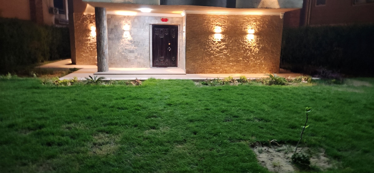 انعم بالهدوء والاسترخاء بصحبة عائلتك في هذا المسكن الهادئ.غرفه نوم باطلاله على الحديقه الاماميه وتكيف بارد وسخه ورسبشن به ٢كنبه سرير ومكيفه وشاشة ال جي سمارت 4k 55 inch ميكرويف وفرن وبوتجاز اي كوك بلت ان مرجيحة وطقم حديقه