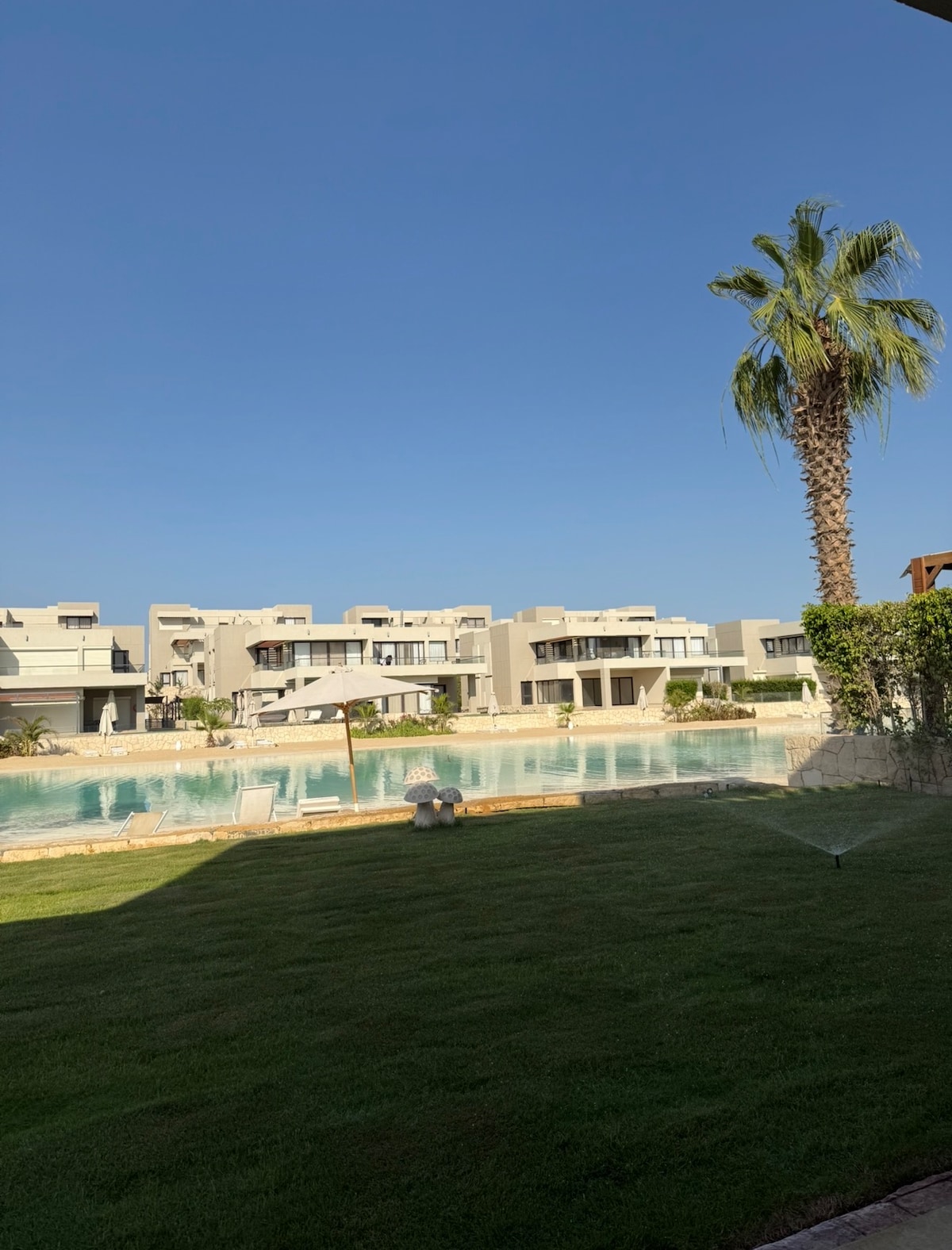 Luxury Golf-View Chalet with Private Garden | Ein Bay Ain Sokhna Luxury 2-bedroom chalet in Ein Bay Ain Sokhna with a private landscaped garden and serene lagoon view. Perfect for golfers, families, or couples seeking a peaceful escape. Enjoy full access to resort amenities including beach, pools, and golf facilities. A premium retreat offering comfort, privacy, and relaxation—just a short drive from Cairo.