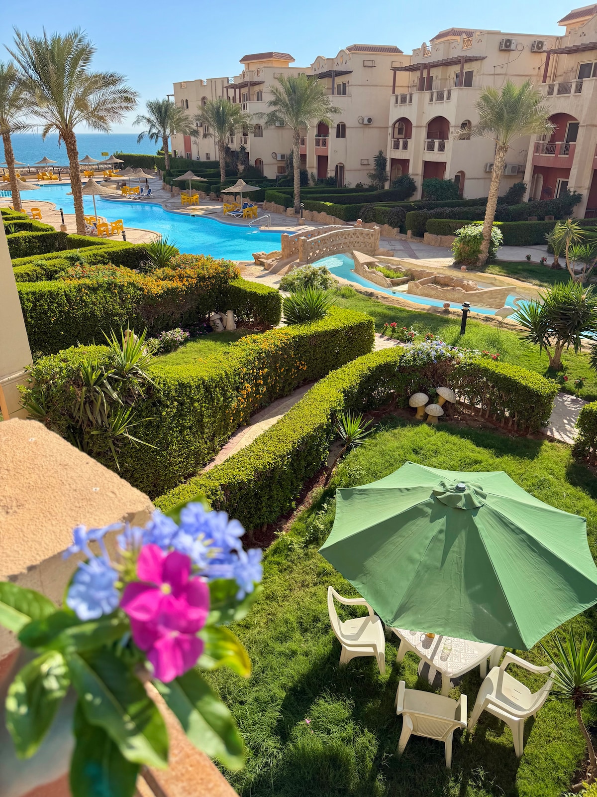 Security 24/7, clinic, 24/7, private beach access, CCTV cameras cover all public areas, 09 swimming pools, marvelous &well maintained gardens, kids areas , (volleyball, football, basketball and tennis court ) mini market, restaurant free delivery and dine in water fall , fountain . * Especial promotion for honeymooners . * one of the 09 swimming pools is for children , one is for families & women with BOURKINIS . * Reach your favorite swimming or diving spot through a newly built bridge