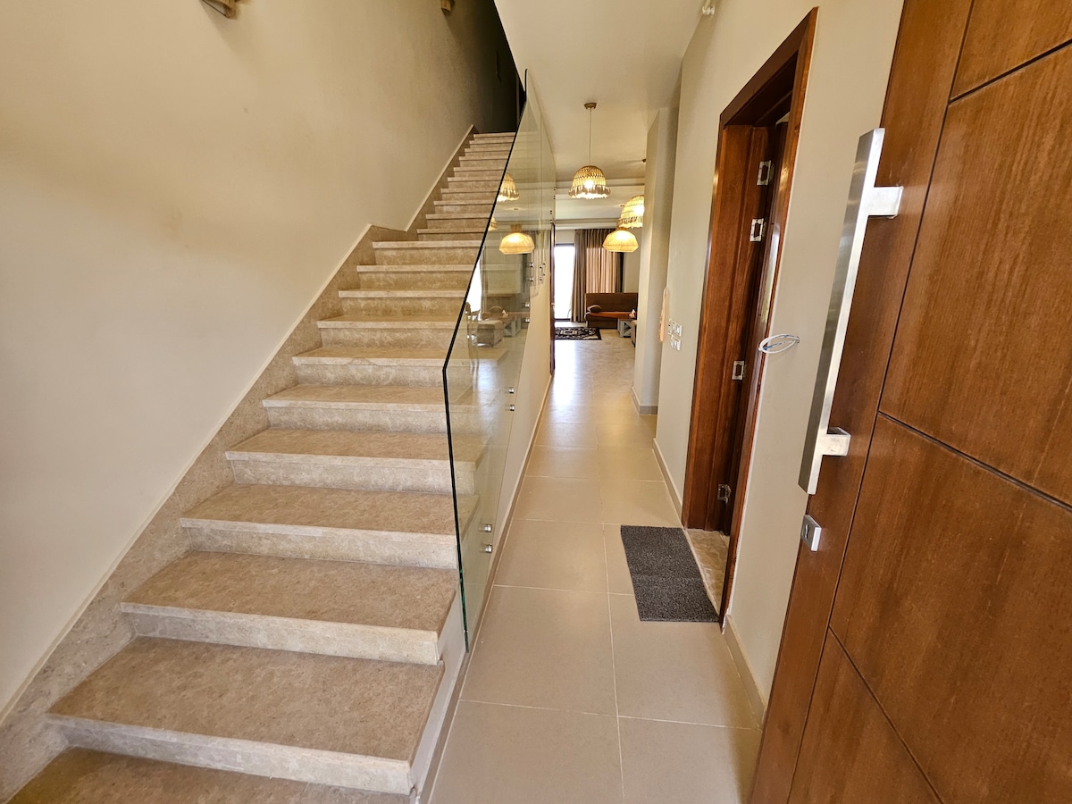 An amazing villa with panoramic sea view at Empire Resort, second row on step, 5 bedrooms and 3 bathrooms and wide garden, a few steps to the beach and pool. The villa has two floors, the ground floor has one master bedroom, fully equipped kitchen with washer, dining room and reception with smart TV and two sofa beds. The upper floor has 4 bedrooms, 1 master bedroom. Three rooms have balconies with fantastic full sea views. Everything is absolutely clean to enjoy a very comfortable vacation.