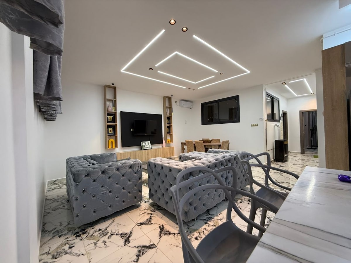 Magnifique appartement luxueux tres bien situé dans le coeur d'ORAN, front de mer (corniche) avec deux chambres et une cuisine ouverte sur un séjour très lumineux avec une décoration chic et épurée! Une vue imprenable sur la ville d’Oran. Vous y trouverez toutes les commodités modernes qui rendront votre séjour inoubliable, situé sur le front de mer d’Oran dans une rue sécurisé. le quartier est connu par son grand boulevard rempli de magasins, de cafés, de restaurants et transports en commun