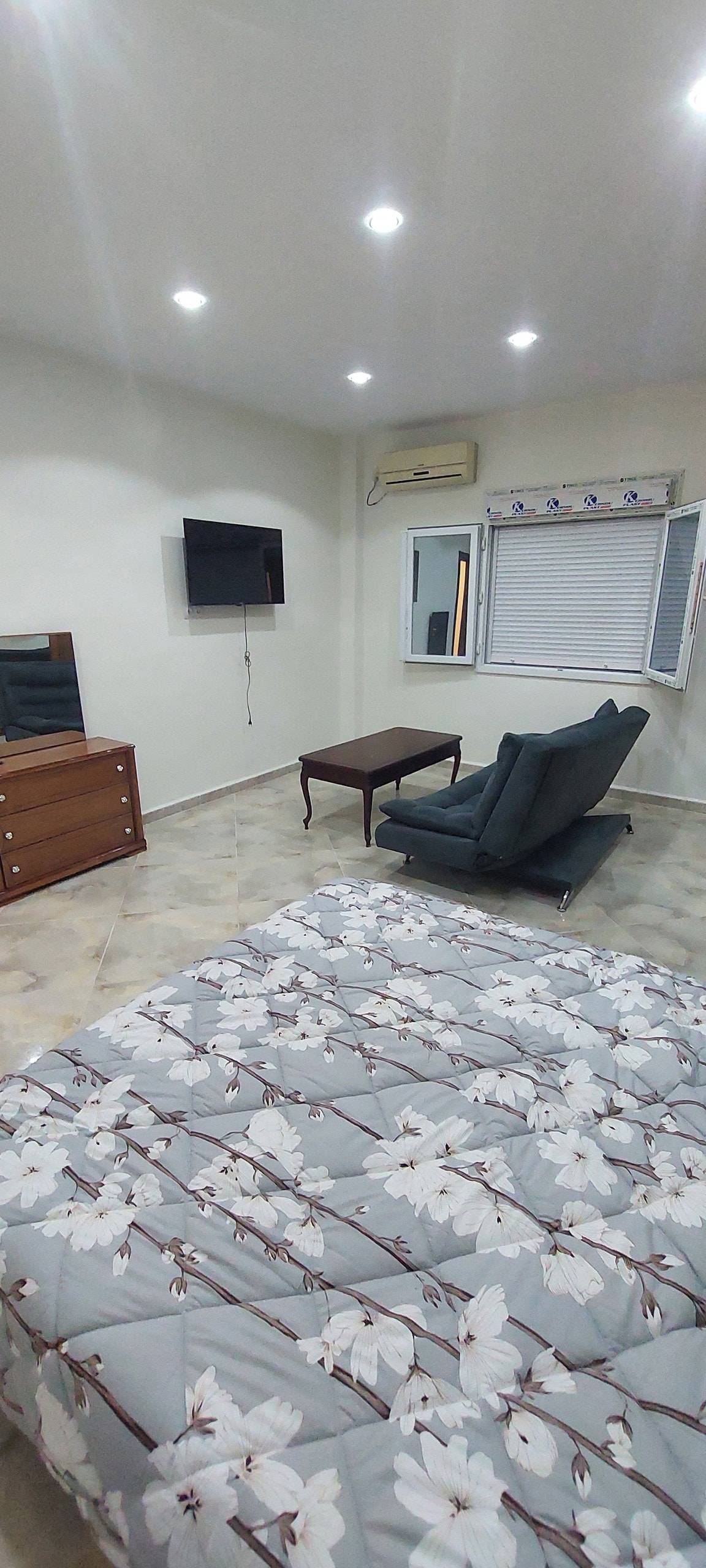 • 1 Chambre avec Lit double - lit King size 200 cm * 200 cm • 2 Smart télé LG avec Netflix • 1 Matelas 1 place • Salon - Fauteuil en L • Salle à manger • Cuisine entièrement équipée • Balcon avec vue sur mer • Salle de sport dans la résidence • Lit parapluie pour bébé (à la demande) La résidence est située en plein coeur d’Oran en face du front de mer, à 9km de la forteresse de Santa Cruz et à 15 km de l’aéroport Ahmed Ben Bella.