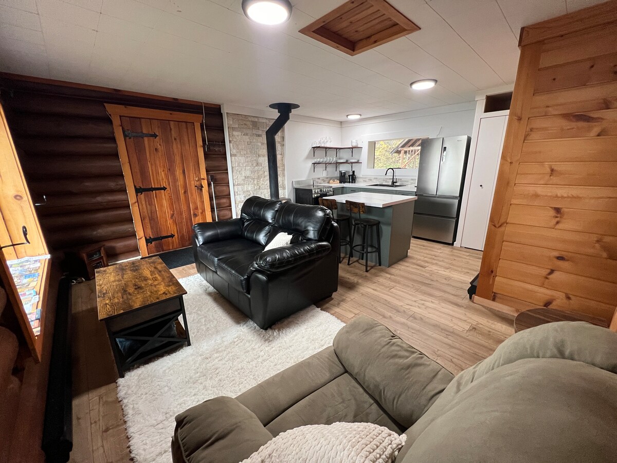 Our Grandpa Max built this eclectic space onto the back of his heritage home in the 1970s as an art studio and woodworking shop. Now we host travelers in this mid-century meets modern Scandi suite. The downtown core is only one block away but the studio is located on a quiet residential street backing on to green-space. Grocery store, coffee shops, restaurants, park with a lookout and the theatre are all within blocks. Perfect for couples, solo adventurers, business travellers and ski bums!