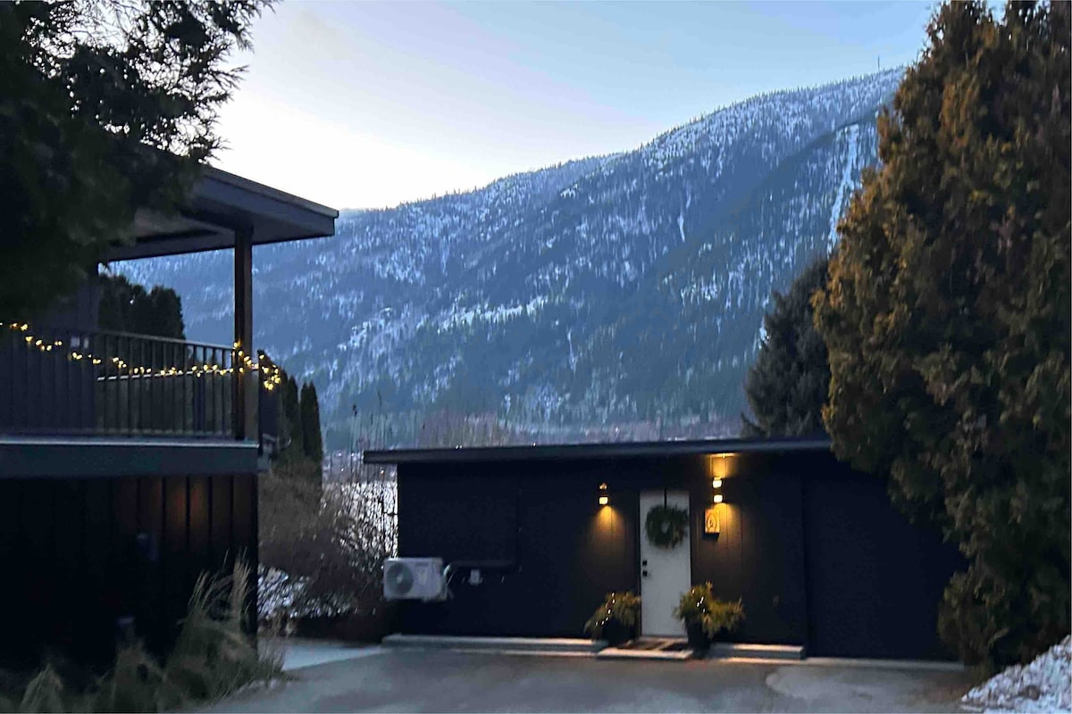 Our Grandpa Max built this eclectic space onto the back of his heritage home in the 1970s as an art studio and woodworking shop. Now we host travelers in this mid-century meets modern Scandi suite. The downtown core is only one block away but the studio is located on a quiet residential street backing on to green-space. Grocery store, coffee shops, restaurants, park with a lookout and the theatre are all within blocks. Perfect for couples, solo adventurers, business travellers and ski bums!