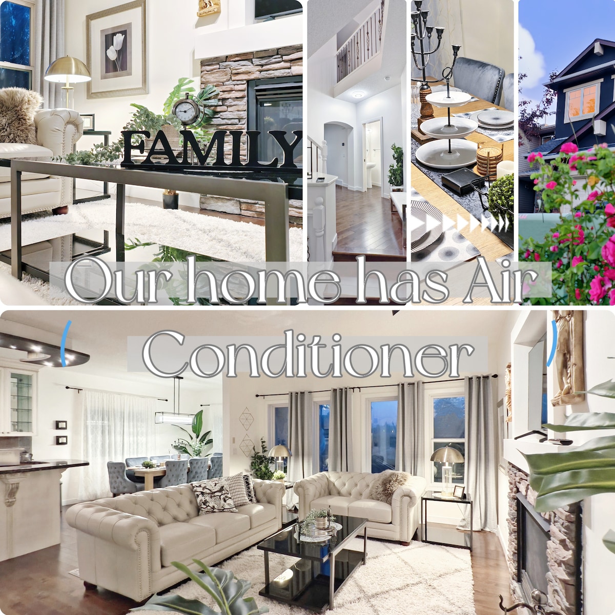 Welcome to your relaxing family oasis, just a 20 minute drive from Calgary Airport in Airdrie. This 3 bedroom, (5 beds total) 2 bathroom home that comfortably sleeps ten is the perfect choice for a memorable getaway! Nestled in the SW of Airdrie, the unique blend of city living and mountain access make this home stand out among the rest. After a fun filled day at Banff, or in downtown Calgary, you'll love coming home to a big 75inch TV in our Central Air Conditioned home.