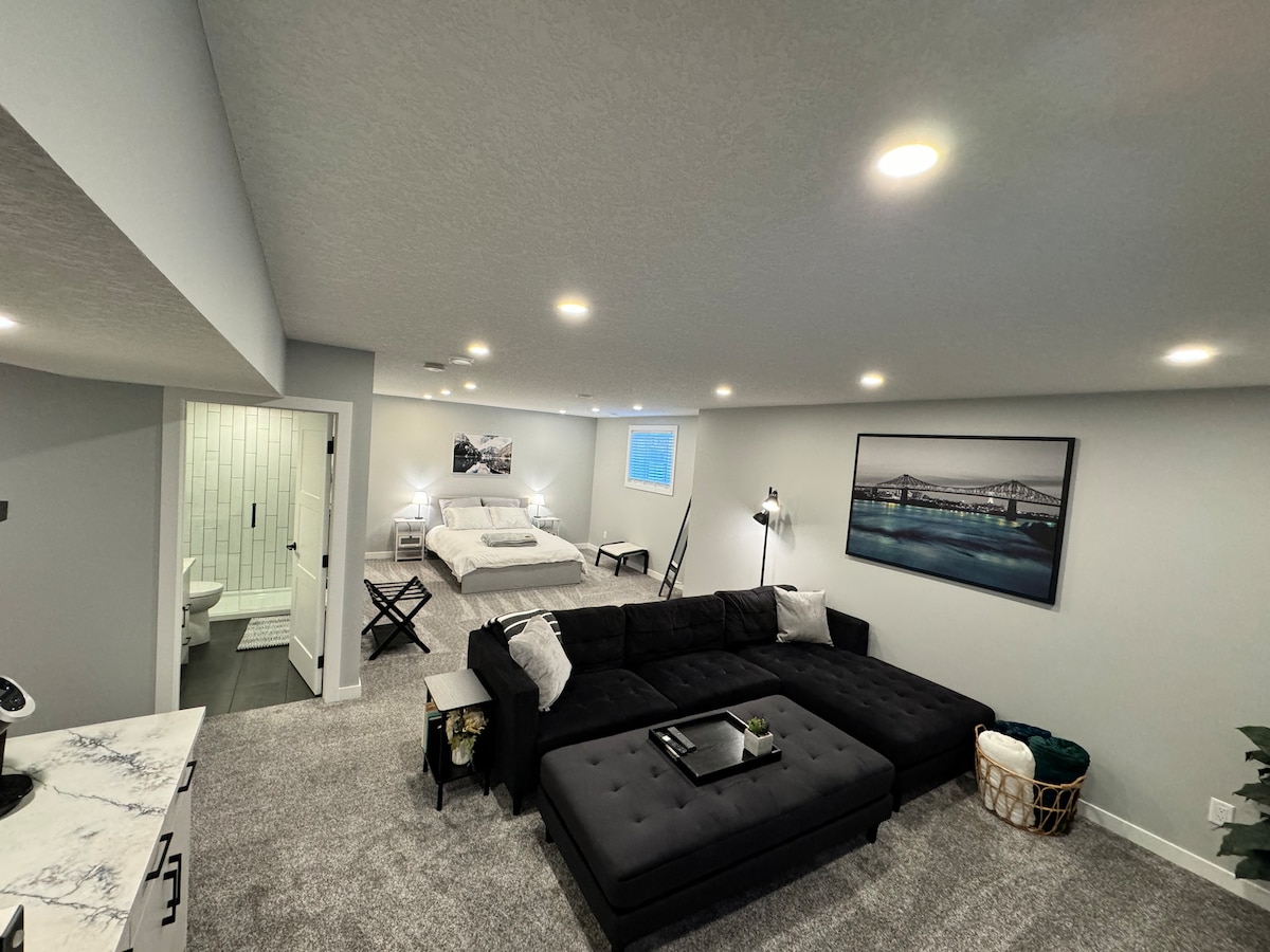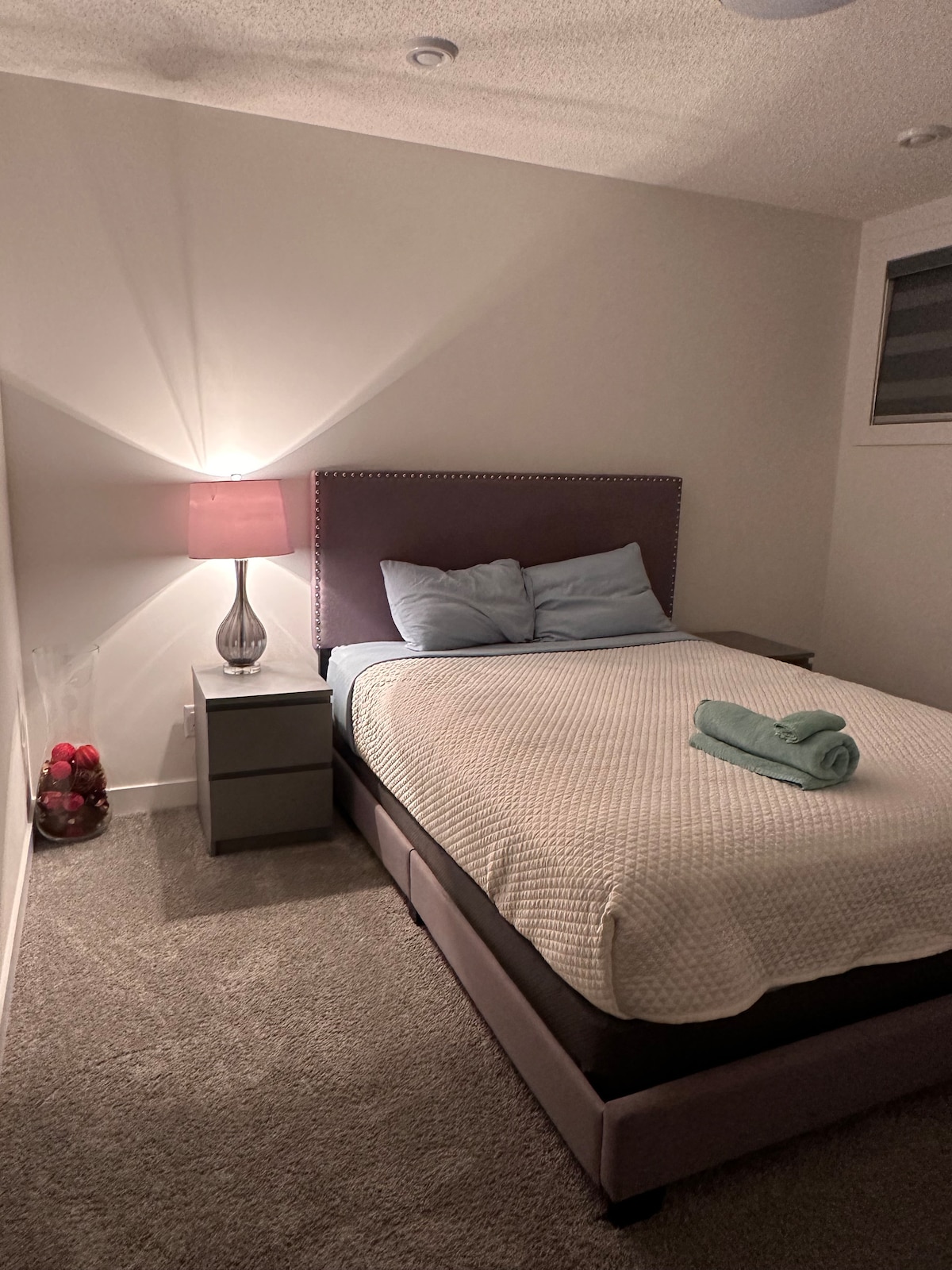 Modern & Cozy Basement in Airdrie – Minutes from Airport & Calgary Welcome to your home away from home! This brand-new suite offers comfort and convenience just few minutes from the airport, major highways, and 24 minutes to downtown Calgary. Enjoy a King-size bed, a floor mattress, workspace with an extra monitor, high-speed Wi-Fi, and a stepper for light workout. Private entrance, and new appliances! Book now