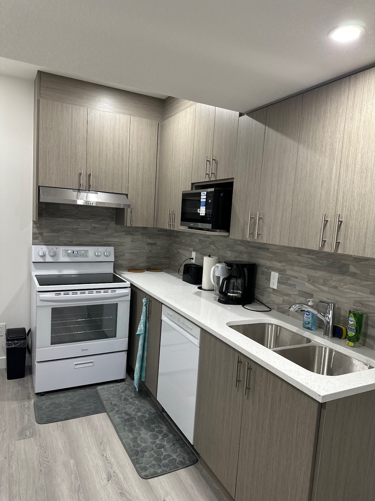 ✨ Modern 1-Bedroom Suite in South Airdrie ✨ Unwind in a newly built private basement suite featuring a cozy bedroom, full bathroom, fully equipped kitchen, and convenient in-suite washer and dryer. Enjoy simple self check-in through your private side entrance. Located in a safe, quiet neighbourhood with a lovely park just behind the house, ideal for jogging, strolling, or fresh air. Only 2 minutes to restaurants, shops, and gas, 20 minutes to Calgary Airport, 25 to Downtown, and 90 to Banff.