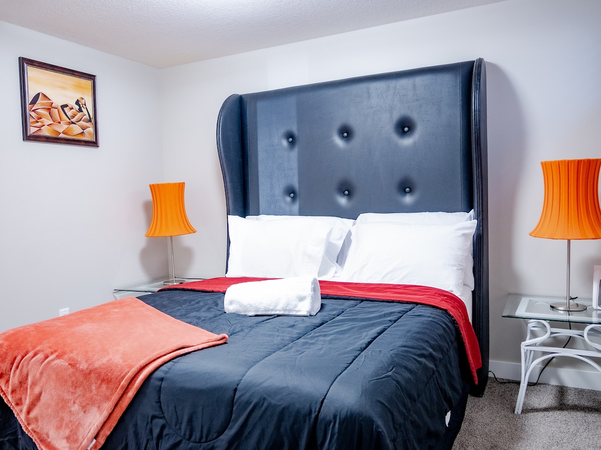 Modern 1 bedroom Airdrie suite Located 20 minutes from the Calgary airport and 30 minutes downtown Calgary. Spacious private basement suite with full kitchen, bath, and bedroom. 75” smart tv, high speed internet with all the comforts of home while you’re away Air mattress available for children if needed