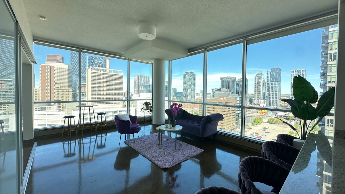 Welcome to our stunning downtown Calgary corner unit condo! This modern retreat offers you the perfect combination of convenience, luxury, and breathtaking views. As you step inside, you'll immediately be captivated by the floor-to-ceiling windows that showcase the stunning city skyline and majestic mountain vistas. Please be aware that the front doors of the building lock at 10 pm. If you book, you'll have to pick up the key/fob in a different location. *** POOL is closed for the winter.