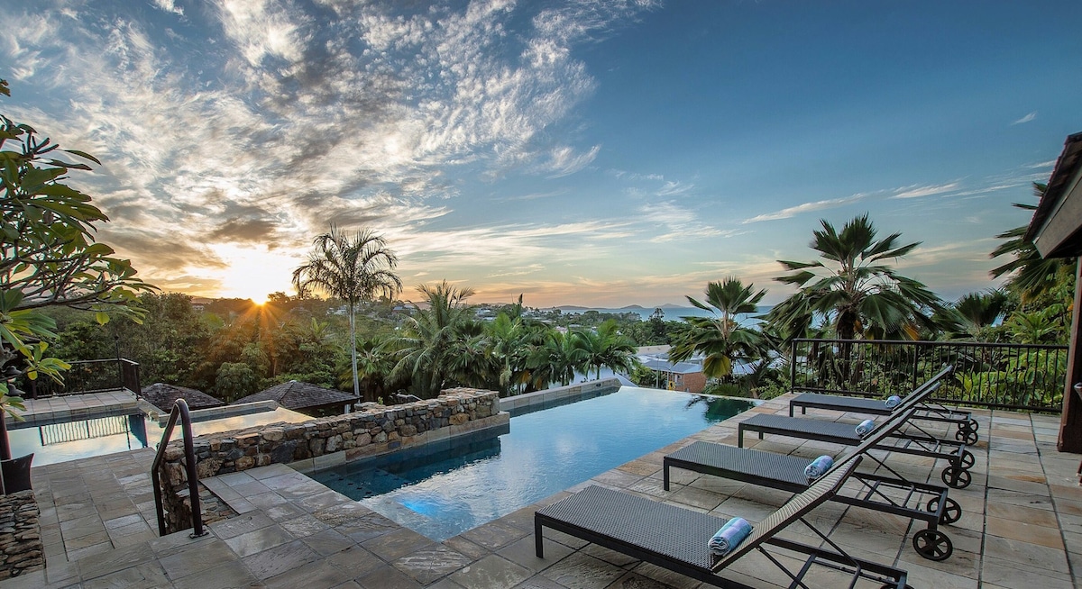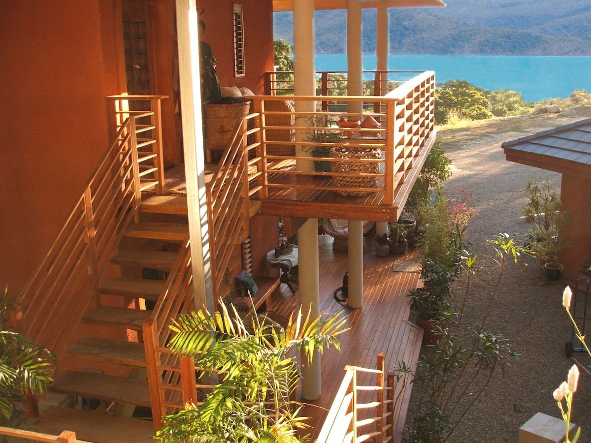 Overlooking Port of Airlie - 5 mn drive from Airlie - self contained with luxury amenities such as your own spa bath, private pool with unabated seaview , breakfast provisions, welcome fruit basket, . A perfect hideaway for a staycation, with glowing sunsets and seaview. Mandalay Pavilion, its idyllic location, seclusion beauty, harmony with nature can only be appreciated by visiting. So captivated by the amazing views and the magical rainforest , you won't want to leave !
