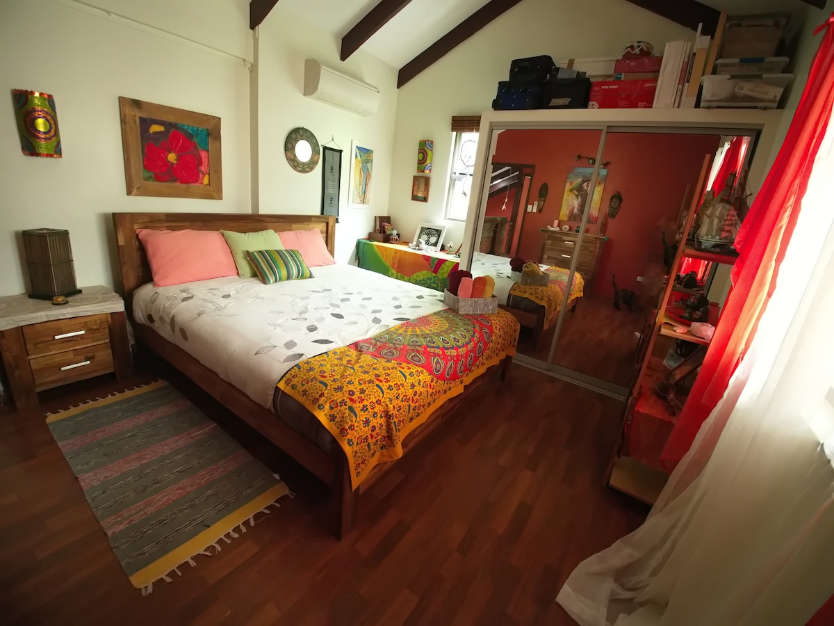 Centrally located, our cool, large & comfortable guest suite has separate, external entry from our house, WiFi, Netflix, bathroom, laundry & kitchenette which are private. In Airlie Beach with no hills to climb, it's a short, flat stroll to the lagoon, beaches, bars, cafe's, restaurants, shops, Woolworths, bush walks, Port, & our beautiful Boardwalk, which meanders to picturesque Coral Sea Marina where you'll find the best restaurants, more bars with breathtaking views of the Whitsunday Islands.