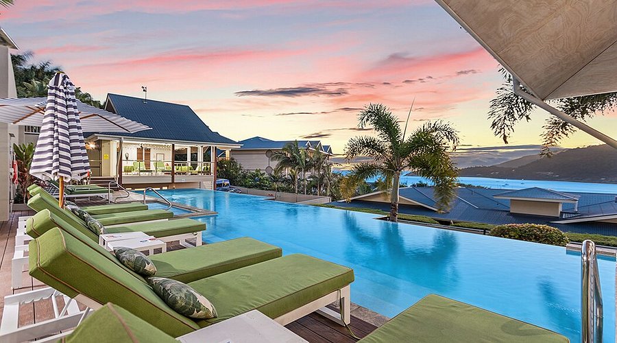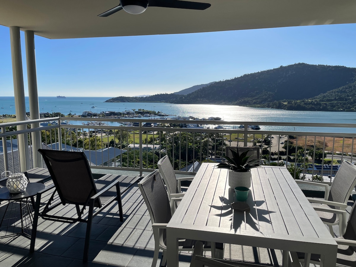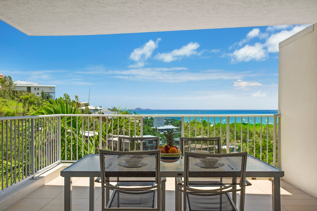 ★Fully self contained 2bedroom 2 bathrooms ★Stylish modern decor throughout ❤︎ ★ 500m stroll to Main Street Airlie ★ 180 degree Coral Sea and Whitsunday Island views ★ 20m infinity edge pool + 15m lap pool and spa ★BBQ area ★Free wifi "Wow wow wow. The apartment was absolutely fantastic. Very well maintained and spotless accommodation, with some lovely touches organised for our stay" STRICTLY no schoolies bookings
