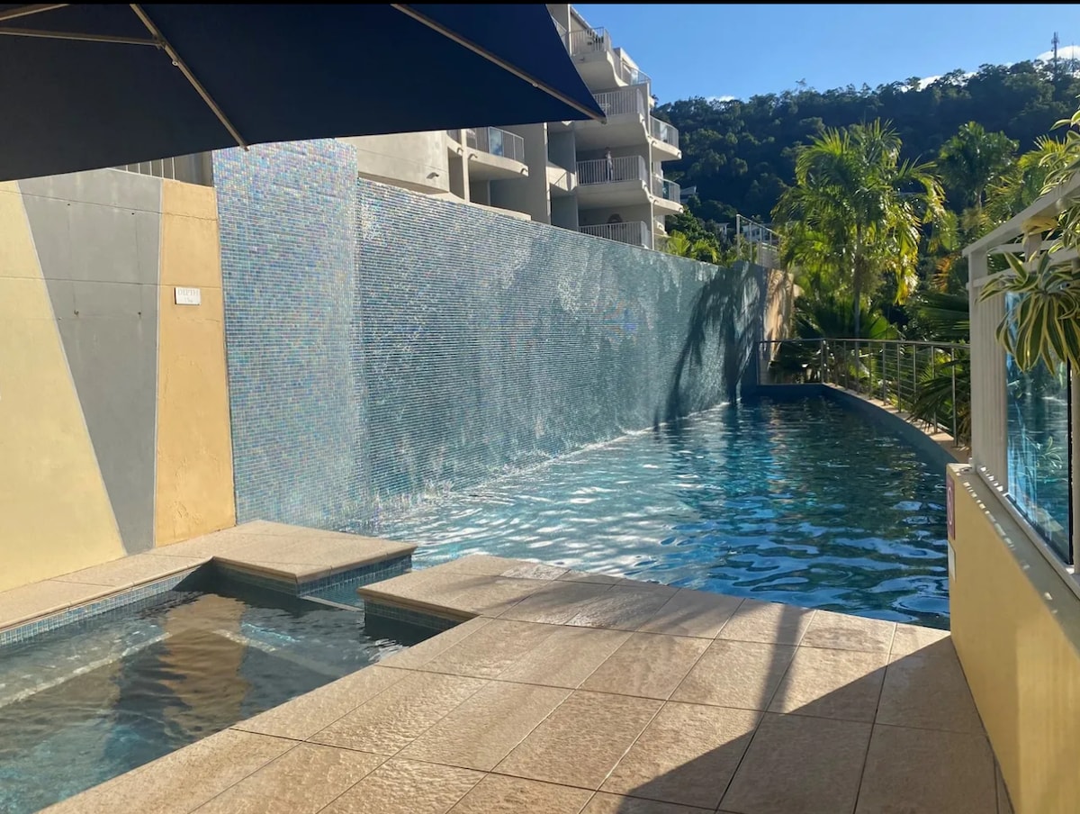Waters Edge Resort, located at 4 Golden Orchid Drive. Third floor unit over looking the main pools. 2 bedroom 2 bathrooms. Full Kitchen and large outdoor veranda. Fully self contained, walking distance to Lagoon and Main Street of Airlie Beach 3 pools, hot spa and gym. Fully Air-conditioned. Best location and stunning sea views. Unit can sleep up to 5 guests